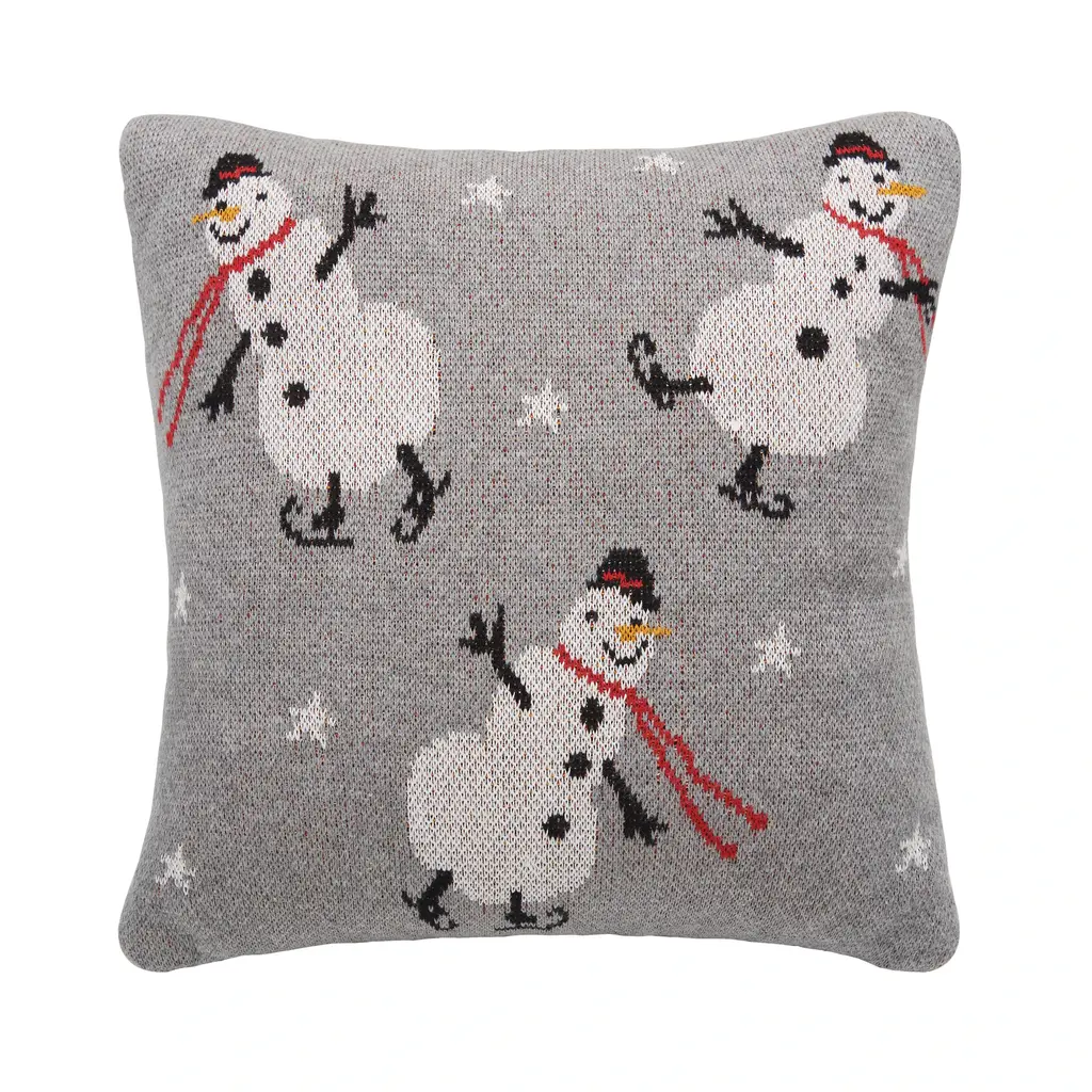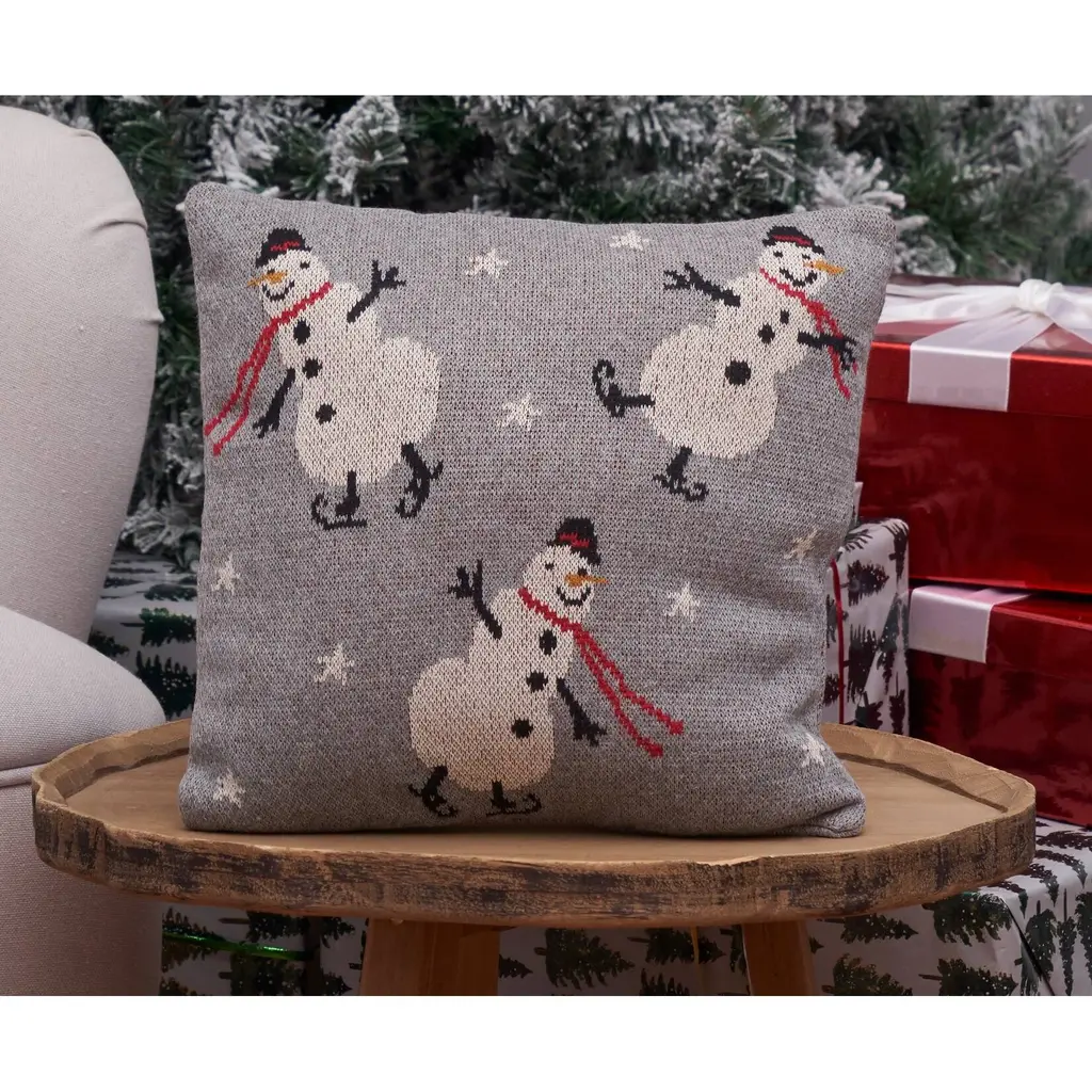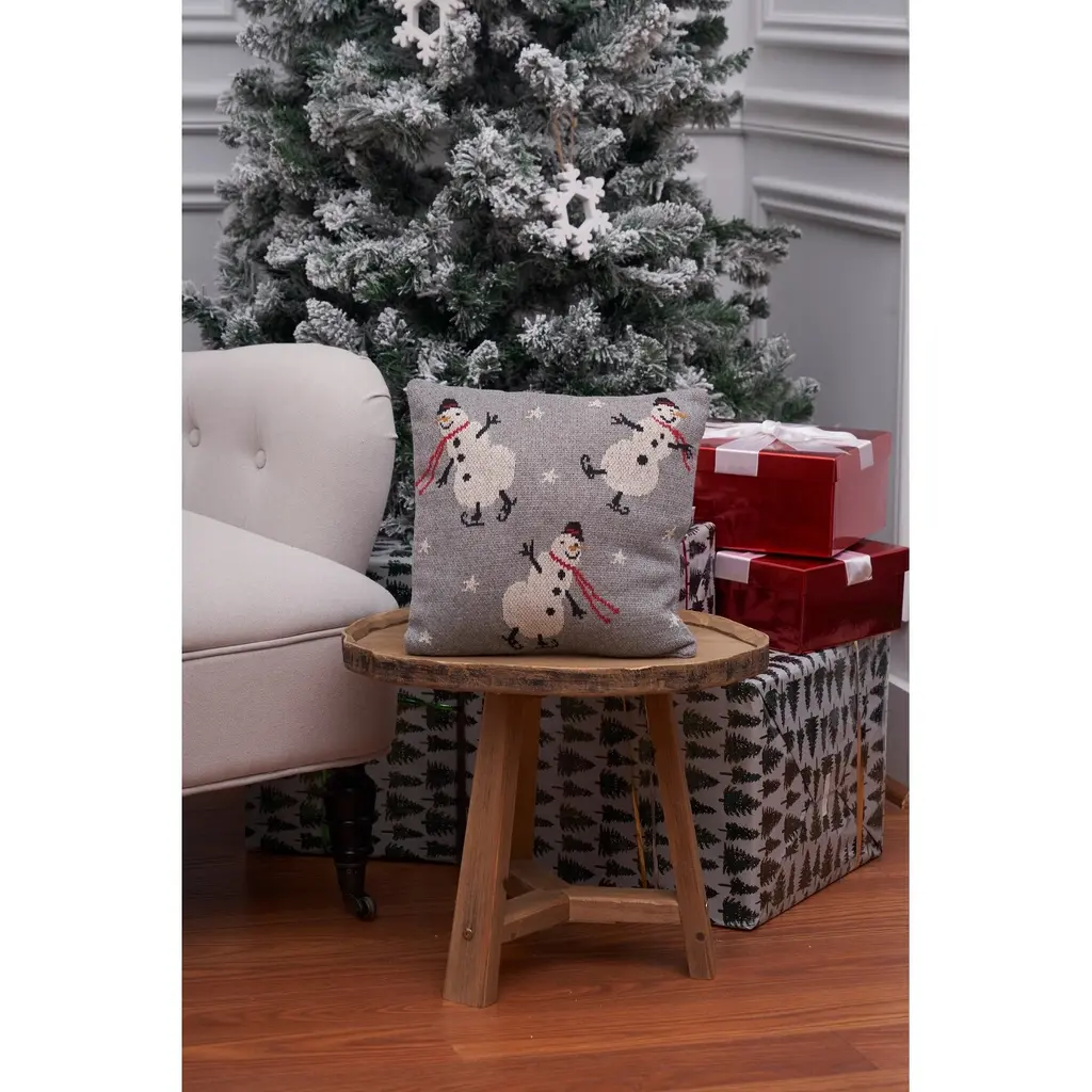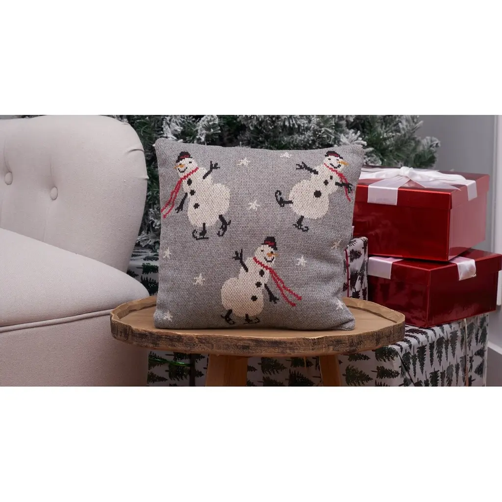 12" X 12" Snowman Christmas Throw Pillow - Grey - 12 X 12