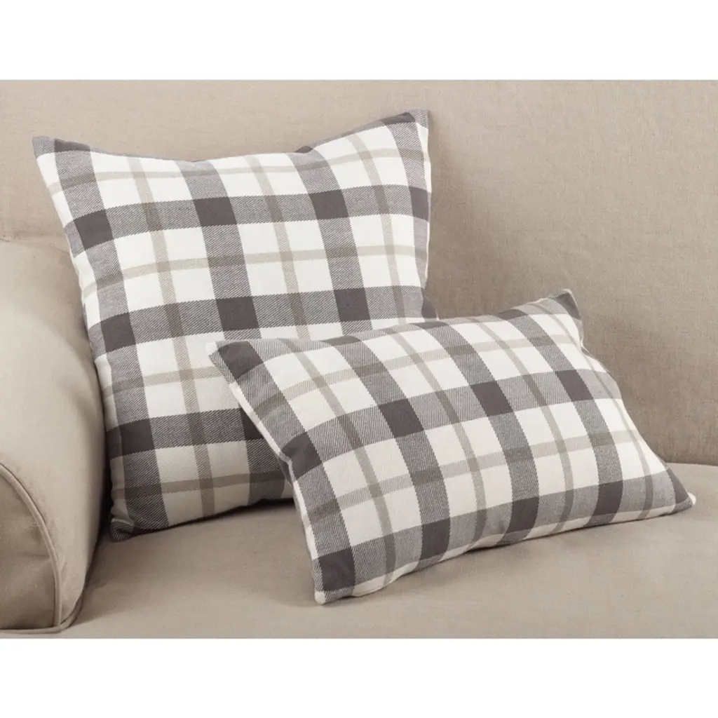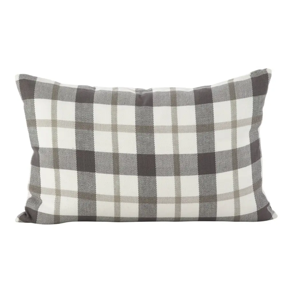 12"x20"plaid Down Filled Throw Pillow Gray - Saro Lifestyle