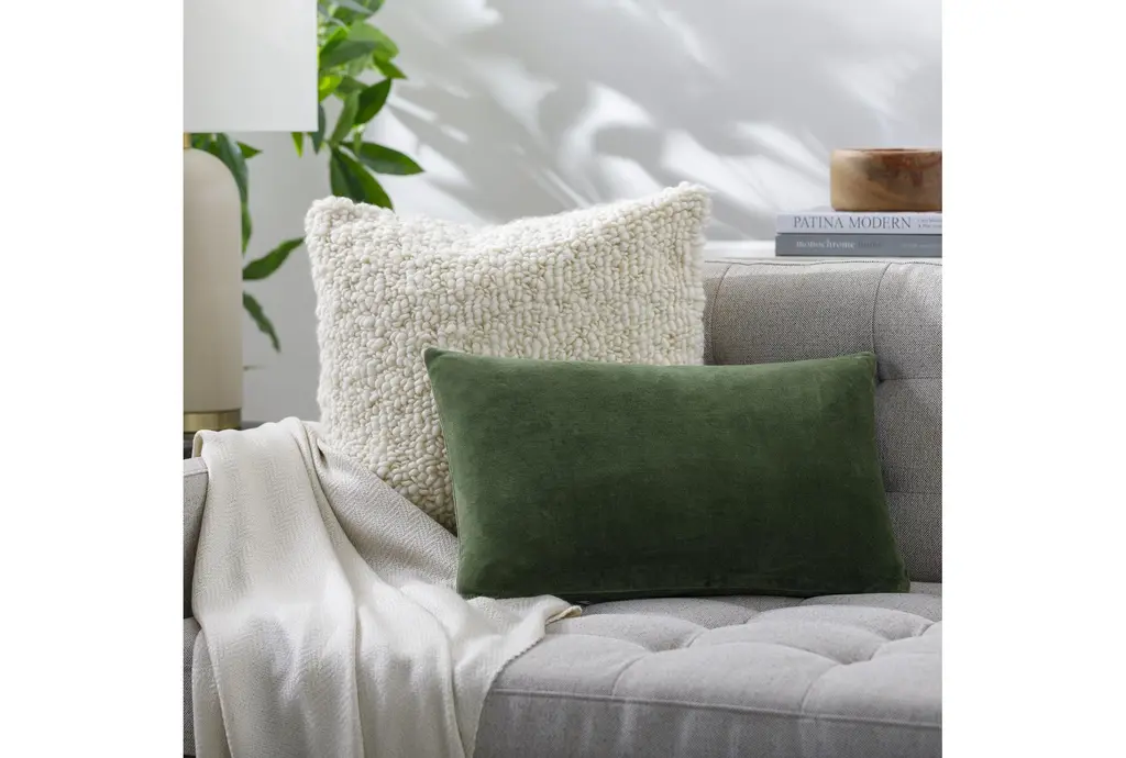 13" X 20" Green Cotton Velvet Down Fill Accent Pillow By Surya