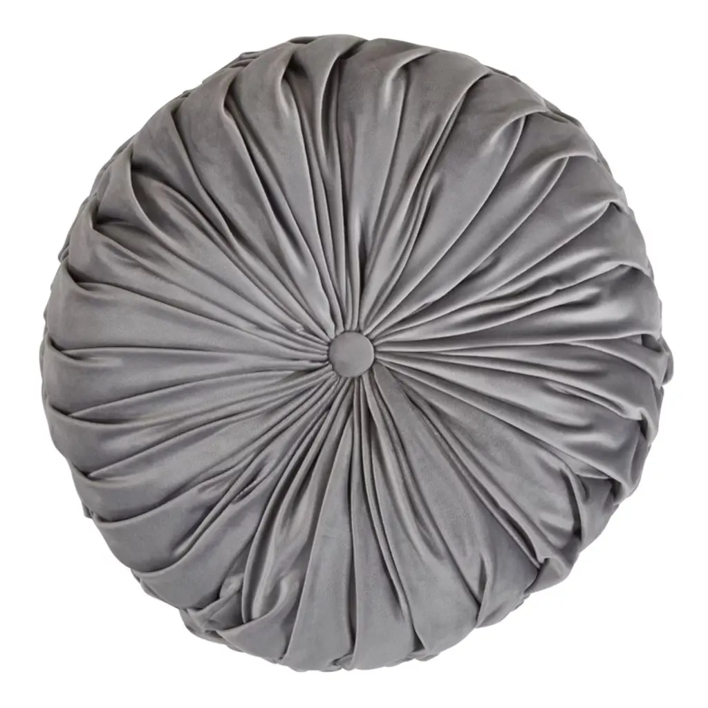 14" Velvet Pintucked Poly Filled Round Throw Pillow Gray - Saro Lifestyle: Pleated, Indoor/outdoor Use, Zipper Closure