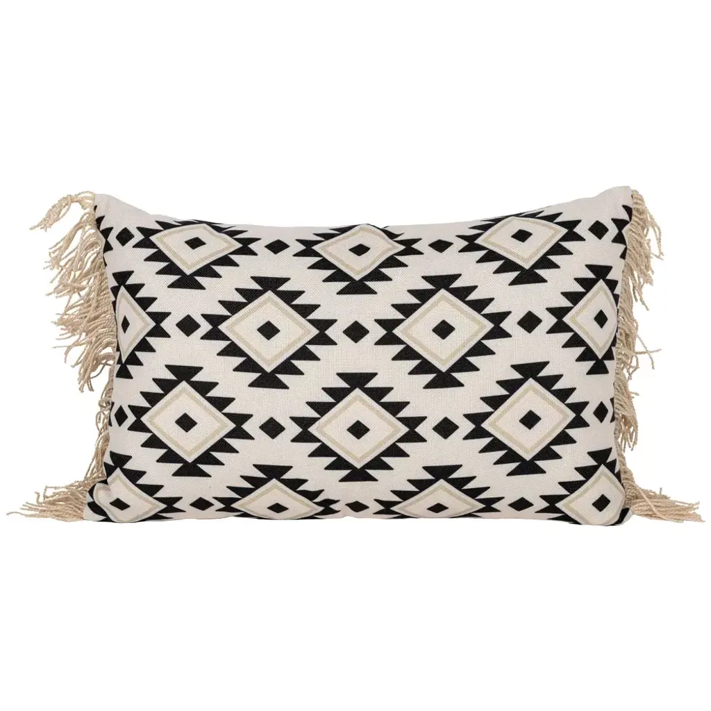 14" X 22" Southwest Geometric Pattern Decorative Outdoor Lumbar Accent Throw Pillow W/ Fringe Tassels