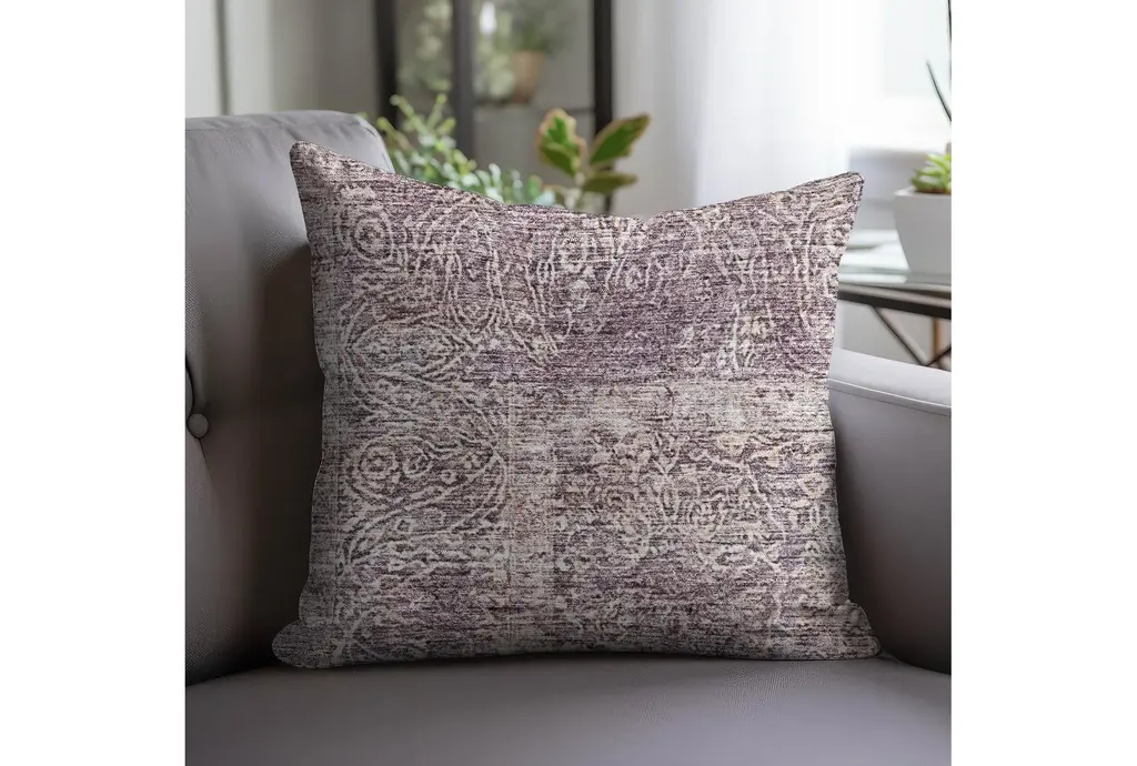 14"x20" Bello Washable Bordered Faded Medallion Print Plum Accent Pillow