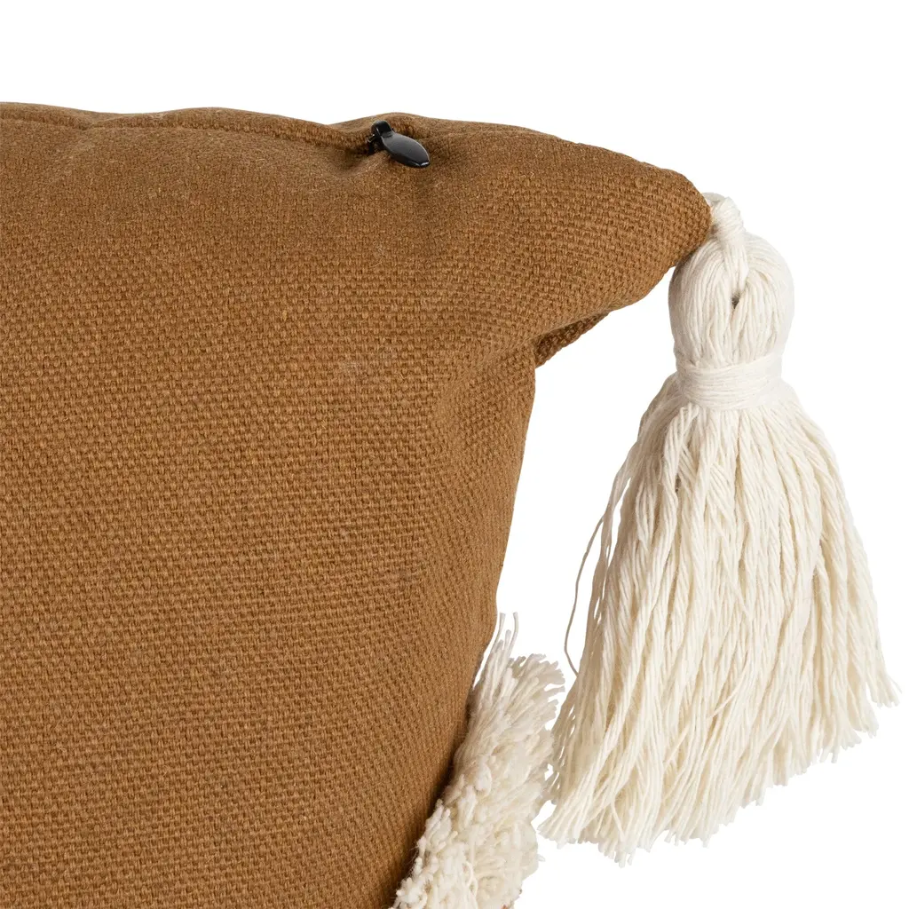 16" Camel Brown Boho Square Cotton Throw Pillow With Tassels - Brown - 16 X 16
