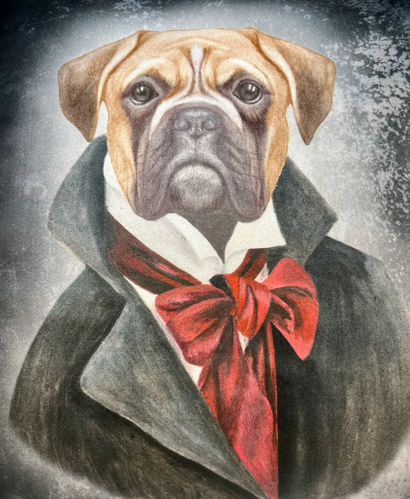 16” Square Decorative Throw Pillow Decorated With A Whimsical Portrait Of A Boxer Dog Looking Like An Aristocrat - Made In The U K