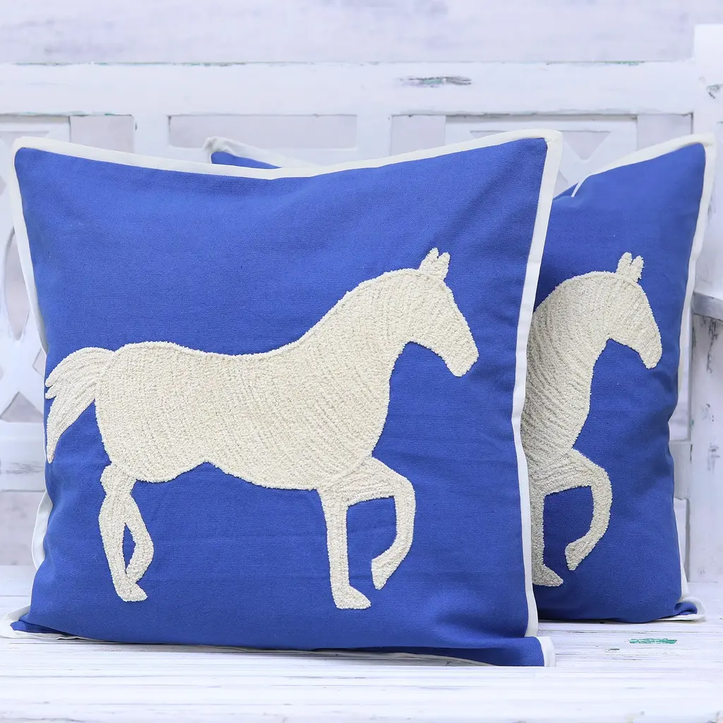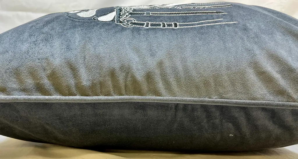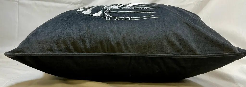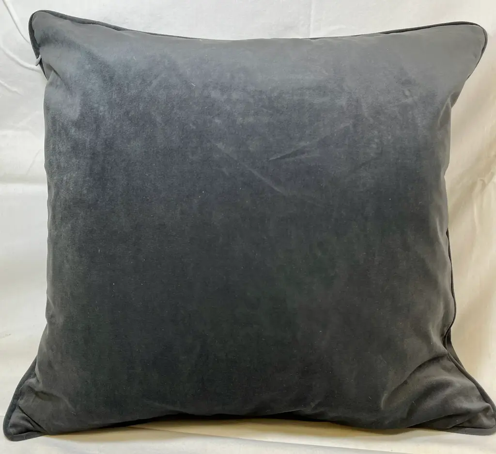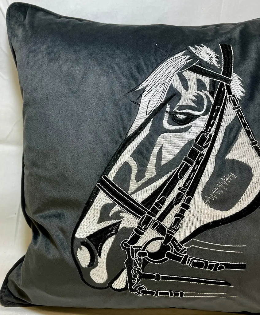 16" Square Decorative Throw Pillow Embellished With a Majestic Horse & Bridle Stitched in Silver on a Lush Velvet-like Graphite Colored Background - Made in the U K. This pillow was made in Wales, U.K., by a small cottage designer/manufacturer owned by a lovely couple. The covers have a hand painted look. Excellent choice as a thoughtful housewarming gift or that perfect accent pillow for your vacation home. The covers are made of a super soft velvet-like fabric. Each cover measures 16" x 16" and the feather insert is larger in size resulting in the full look of the pillow. Dry clean only. Pillows are sold only with insert. *** Please Note that the pillows can vary from the listing photos due to the cut and placement of the fabric on the pillow. For other designs and sizes, please check our shop here.