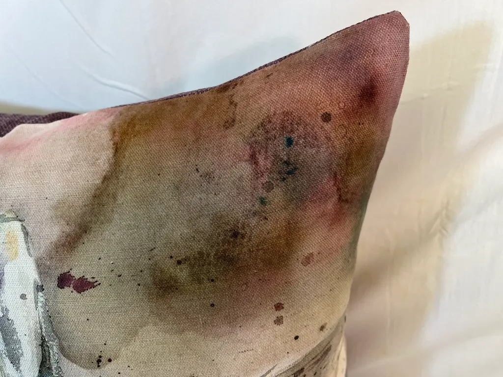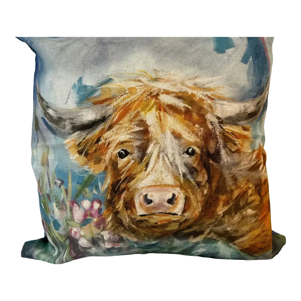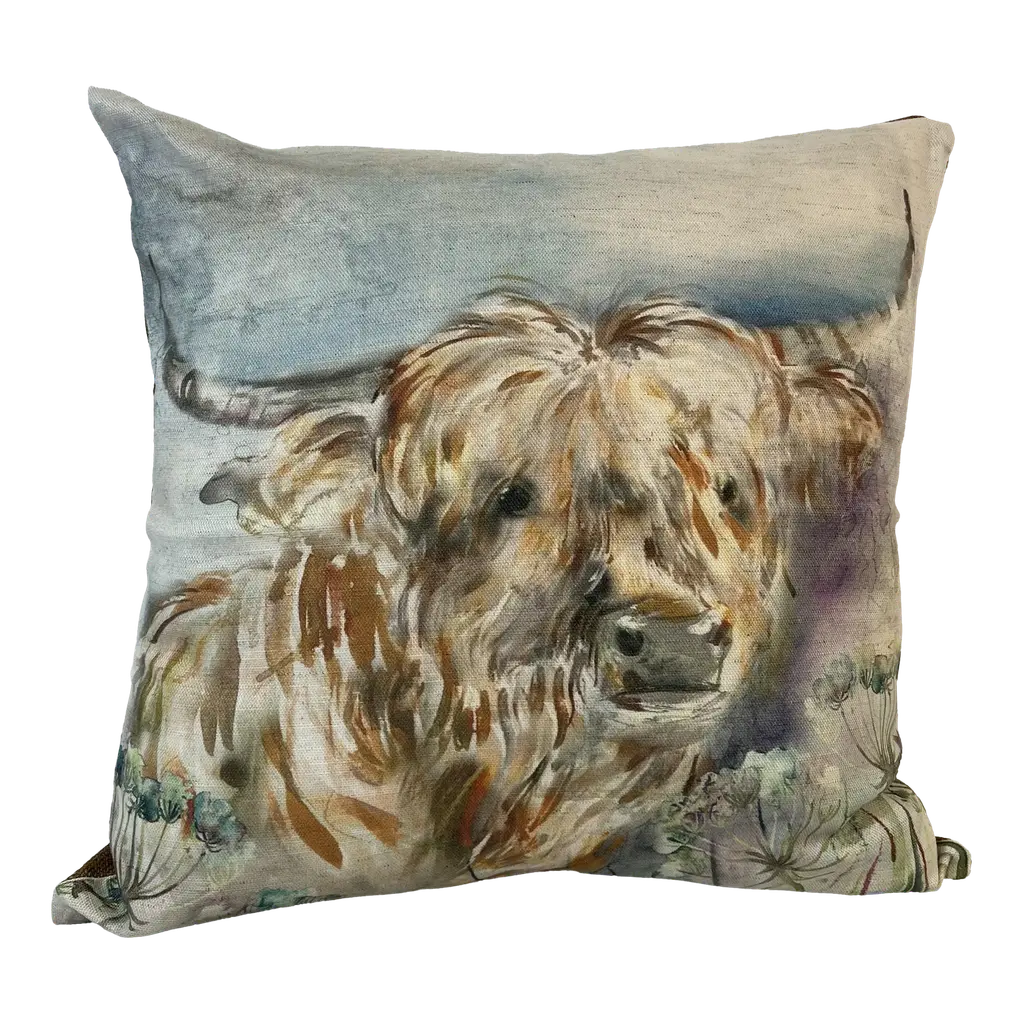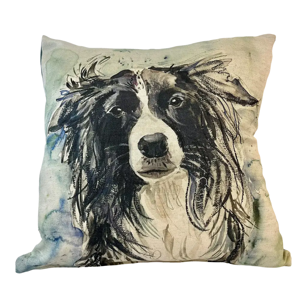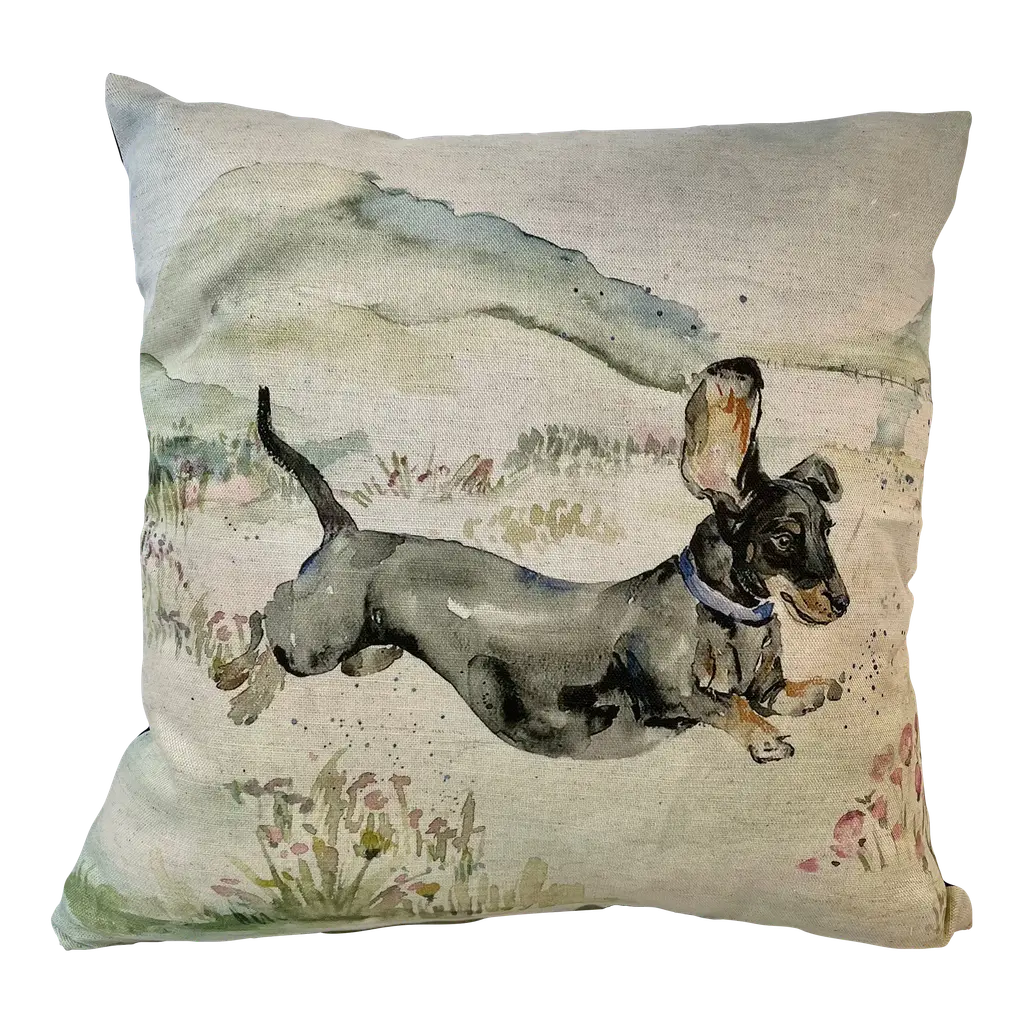 16" Square Decorative Toss Pillow Adorned With The Portrait Of An Alert Rabbit /Hare In The Grass - Made in the U K Measures 16" X 6" X 16" This pillow was made in Wales, U.K., by a small cottage designer/manufacturer owned by a lovely couple. The covers have a hand painted watercolor look. Excellent choice as a thoughtful housewarming gift or that perfect accent pillow for your vacation home. The covers are made of linen (53%) and cotton (47%). Each cover measures 16" x 16" and the feather insert is larger in size resulting in the full look of the pillow. Dry clean only. Pillows are sold only with insert. For other designs and sizes, please check our shop here.