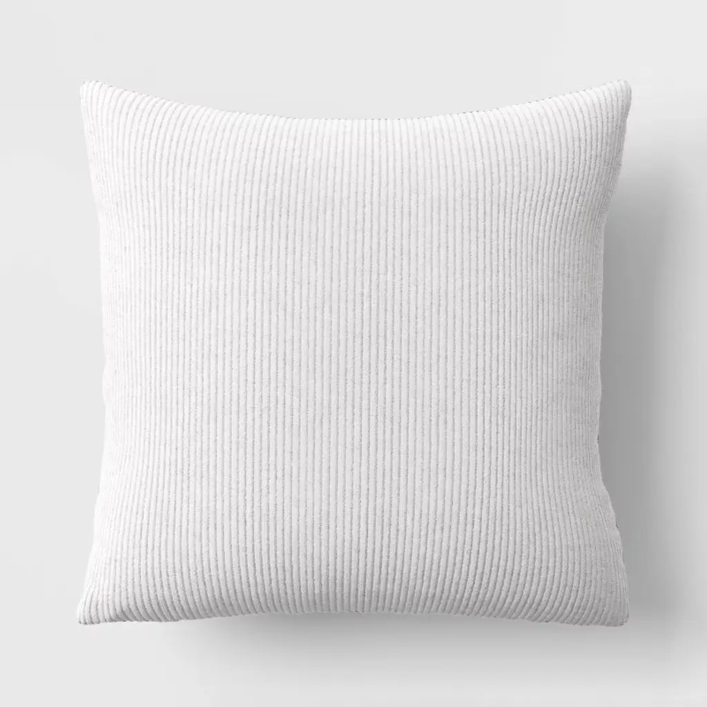 Bring soft, neutral vibes to your home decor with this Square Corduroy Toss Throw Pillow from Room Essentials™. This toss pillow is made from 100% recycled polyester corduroy fabric shell and has polyester filling for soft comfort. Featuring a ribbed texture, this square throw pillow adds the right amount of texture and style whether placed on a couch, sofa, chair or bed. Suitable for indoor use, this decorative pillow boasts a sewn-seam closure that gives it a polished appearance.Room Essentials™: Everyday Value