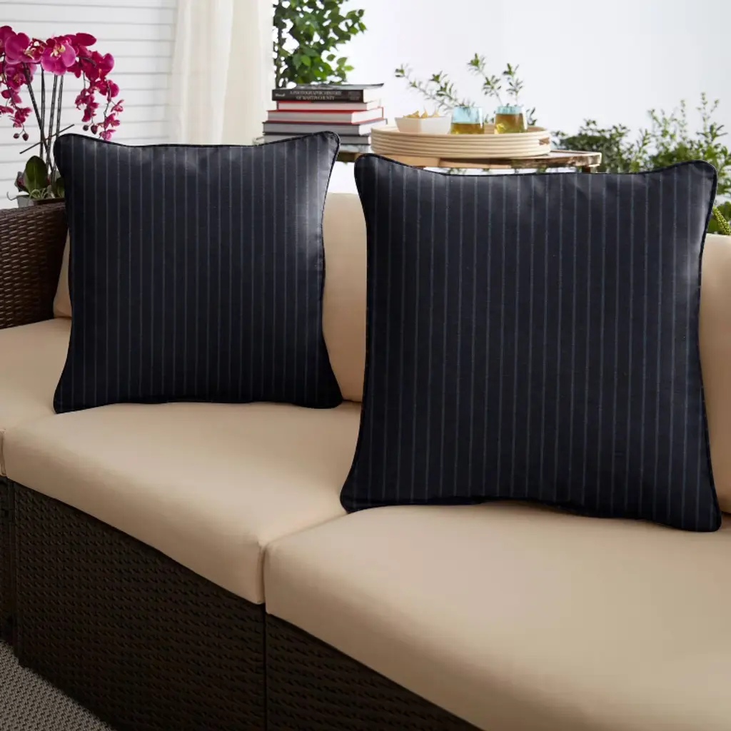 16"x16" 2Pk Square Sunbrella Corded Outdoor Throw Pillows Indigo Blue: Uv & Weather-resistant, Acrylic Fabric