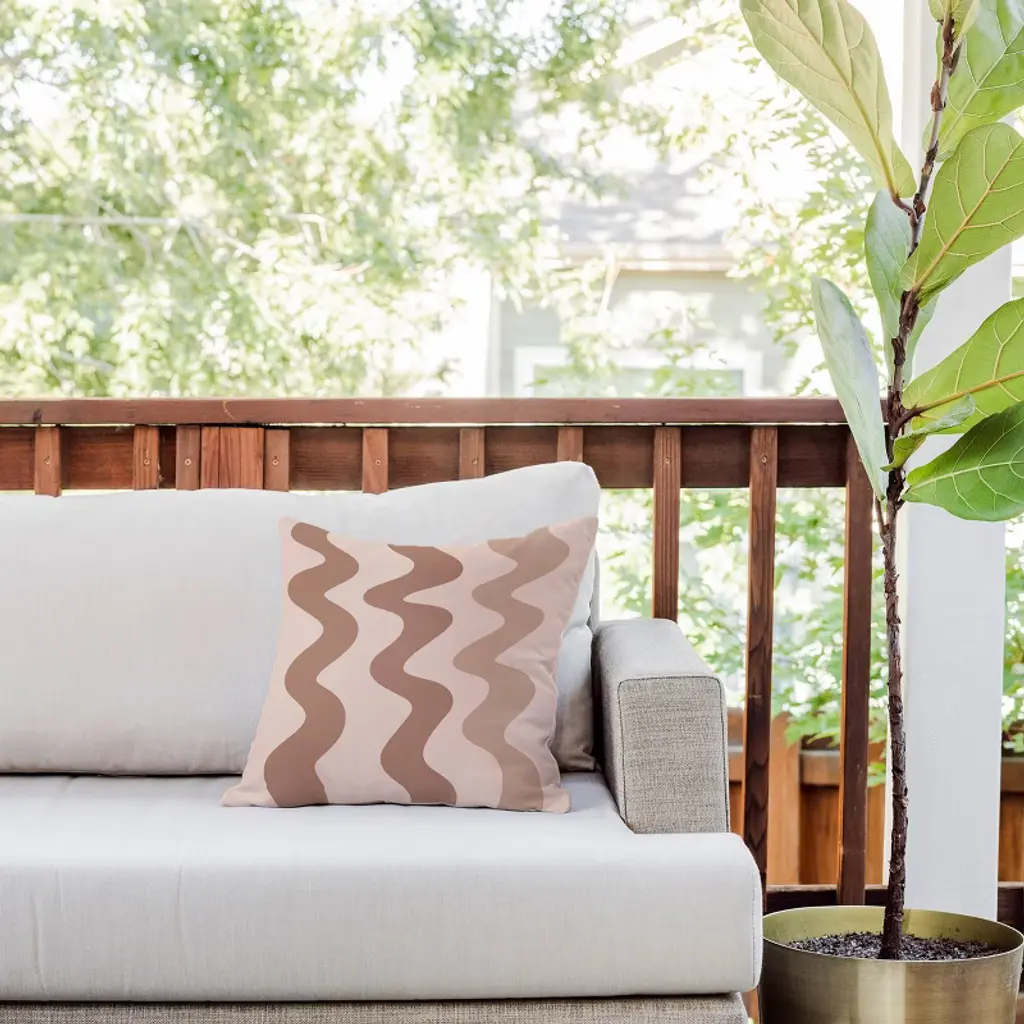 16"x16" Deny Designs Angela Minca Squiggly Lines Mocha Mousse Square Outdoor Throw Pillow Brown