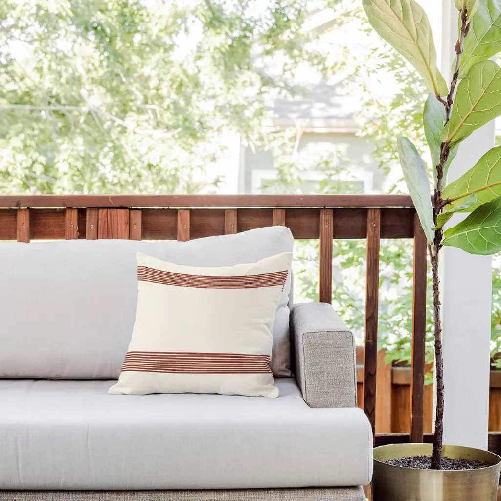 16"x16" Deny Designs Becky Bailey Band In Rust Square Outdoor Throw Pillow Off-white