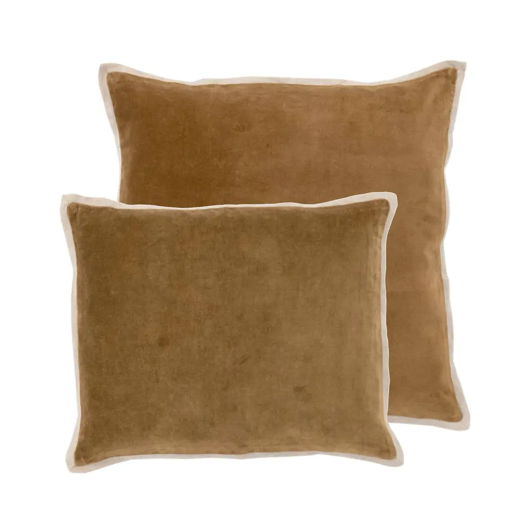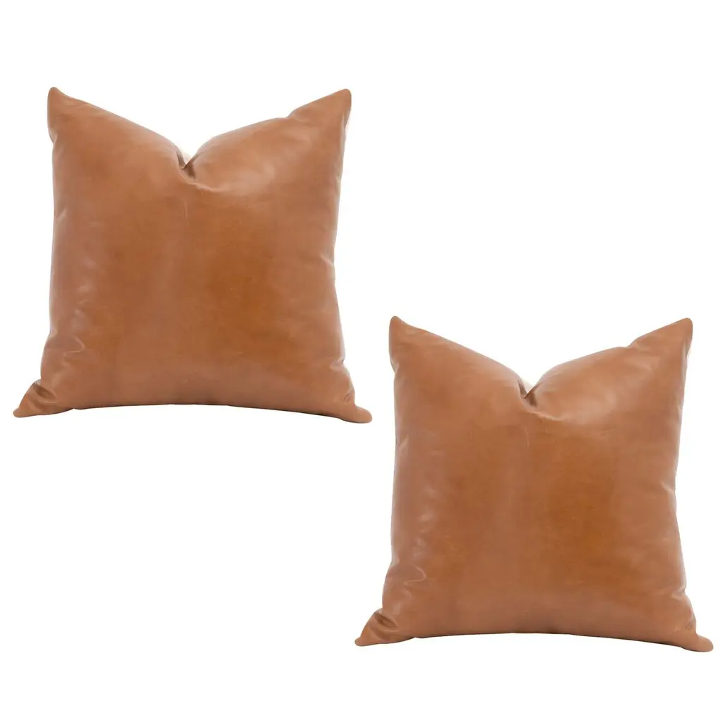 18" Double-Corded Solid Microsuede Square Throw Pillows, Set Of 2, Camel