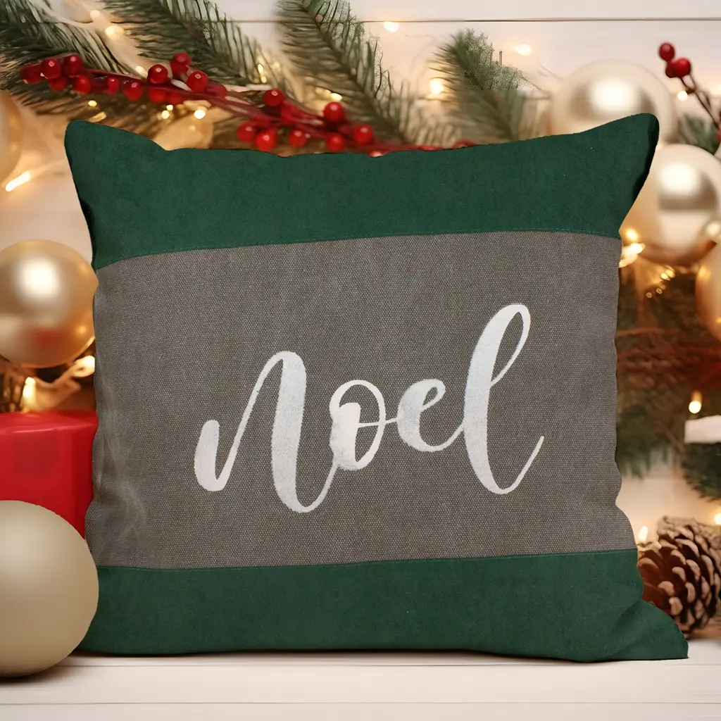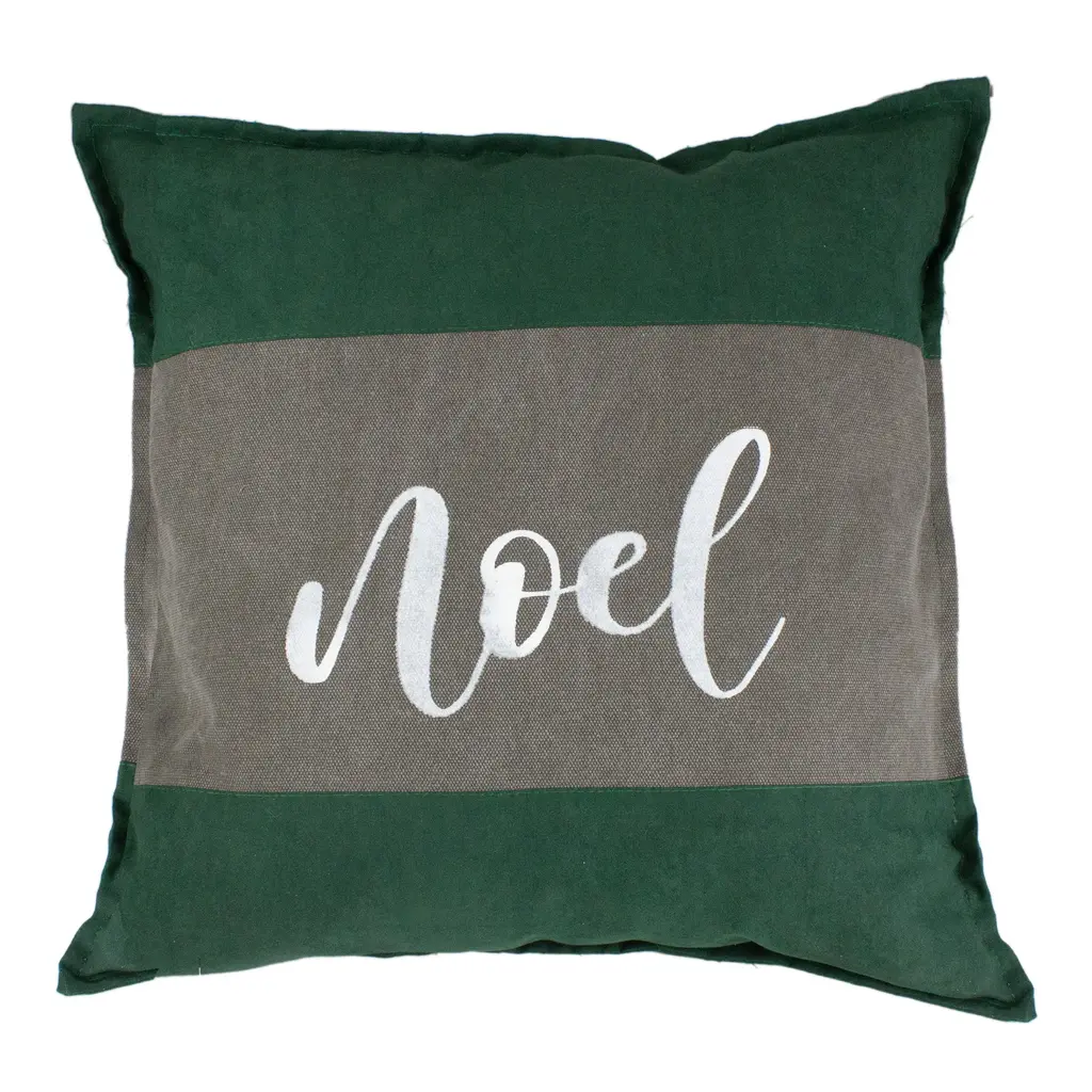 This exquisite pillow features a stunning combination of rustic green and brown hues creating a cozy and inviting atmosphere. Adorned with the word "Noel" in elegant cursive white letters this pillow captures the spirit of Christmas in a stylish and sophisticated manner. Whether placed on your couch armchair or bed this festive throw pillow is sure to become a cherished addition to your seasonal decor. Embrace the joy of the holiday season with this festive Christmas throw pillow. Features: Color(s): green and brown. Printed with "Noel" in white cursive letters over a brown burlap-style banner background. Square pillow with stitched border edges. Zipper closure. One sided design solid green back. Recommended for indoor use only. Care instructions: hand wash only air dry. Dimensions: 18" high x 18" wide. Material(s): Shell: suede. Filling: polyester