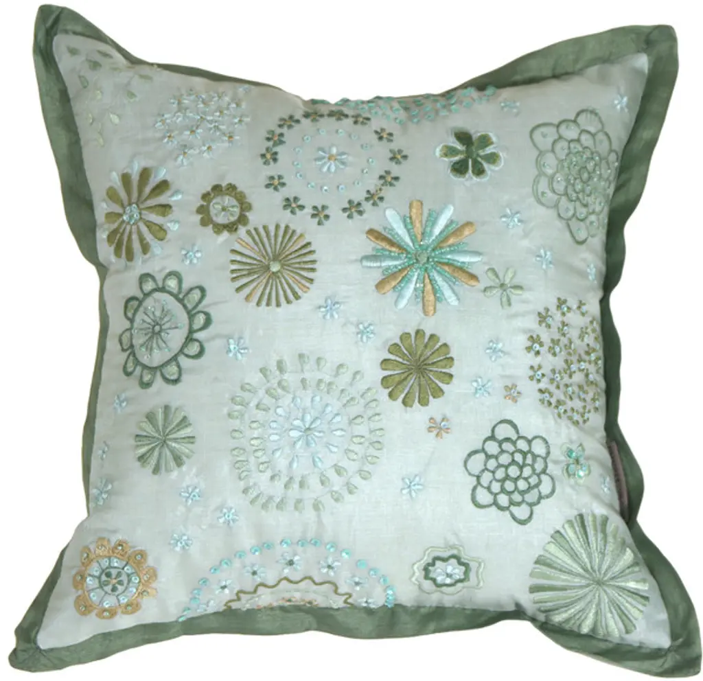 Featuring a charming multi-green geometric pattern on a cotton cover, this square pillow will bring a lively accent to any room decor. This 18-inch pillow is available with a down or polyester filling. Set includes: One (1) Decorative PillowPattern: Floral, Nature, Graphic Print, ArtRemovable Cover: YesCover closure: ZipperEdging: KnifePillow shape: SquareDimensions: 18 inches wide x 18 inches longCover materials: 100-percent cotton Care instructions: Spot clean The digital images we display have the most accurate color possible. However, due to differences in computer monitors, we cannot be responsible for variations in color between the actual product and your screen. Pillow Shape: Square Material: Cotton Style: Contemporary Pattern: Floral, Geometric Set Include: One Pillow Care Instruction: Spot Clean Pillow Type: Accent Fill Type: Down, Polyester Size: 18 x 18 Color: Grey