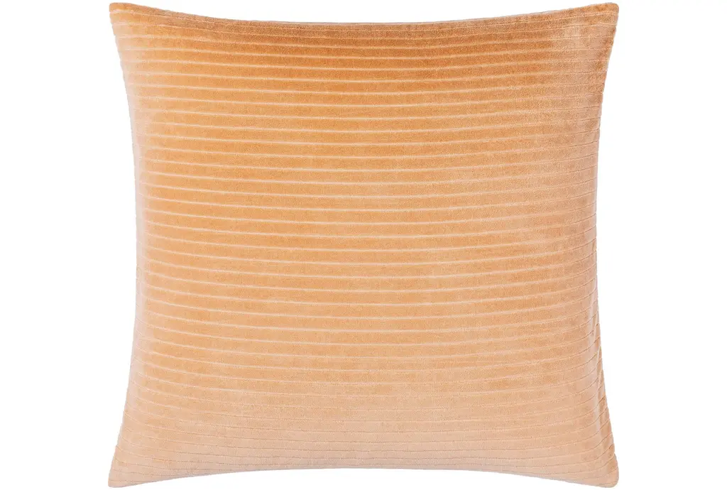 Elevate your home decor with the 18" X 18" Camel Cotton Velvet Stripes Down Fill Accent Pillow by Surya. This delightful square pillow features a soft camel color and a ribbed texture that brings warmth and comfort to any room. Made of 100% cotton velvet, it's both durable and machine washable for easy care.