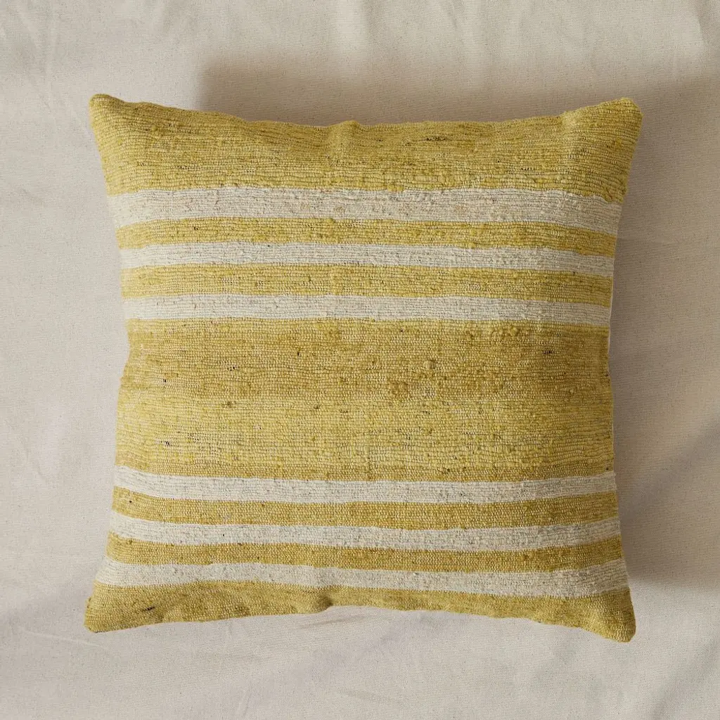 Add a touch of modern style to your home with the 18'' x 18'' Elowen Gold with Down Fill Accent Pillow by Amber Lewis x Loloi. This gold pillow features a low pile design, making it perfect for high-traffic areas. Its square shape and cozy down fill provide both comfort and support.