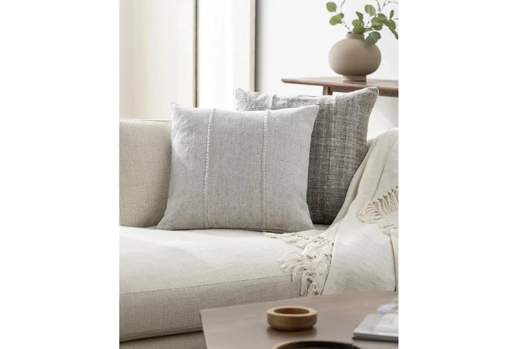 Enhance your living space with the 18" X 18" Off White Mudcloth Accent Pillow by Surya. This versatile pillow brings texture and comfort to any room, making it a perfect addition to your home decor. The off white color effortlessly complements various styles, adding a touch of sophistication to your furniture.