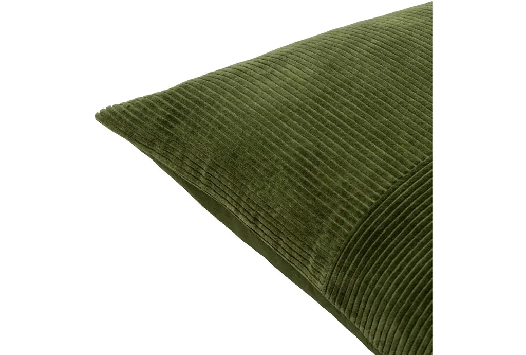 18" X 18" Olive Cotton Corduroy Quarters Down Fill Accent Pillow By Surya | Machine Washable