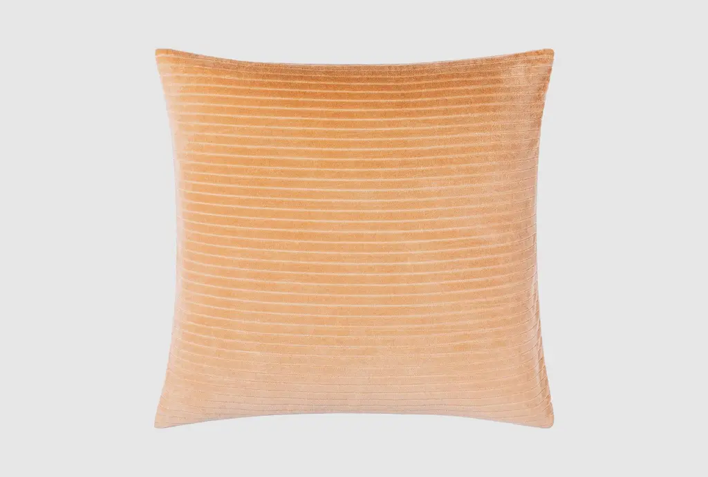 Enhance your home decor with the 18" x 18" Tan Cotton Velvet Stripes Down Fill Accent Pillow by Surya. This square pillow features a soft and inviting tan color that complements any space. Its down cushions provide comfort and support, while the cotton fabric ensures durability and ease of maintenance.