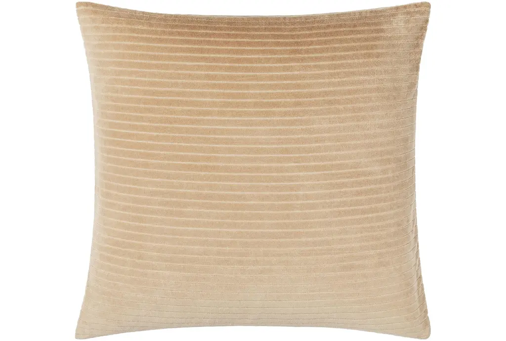 18" X 18" Tan Cotton Velvet Stripes Down Fill Accent Pillow By Surya | Machine Washable