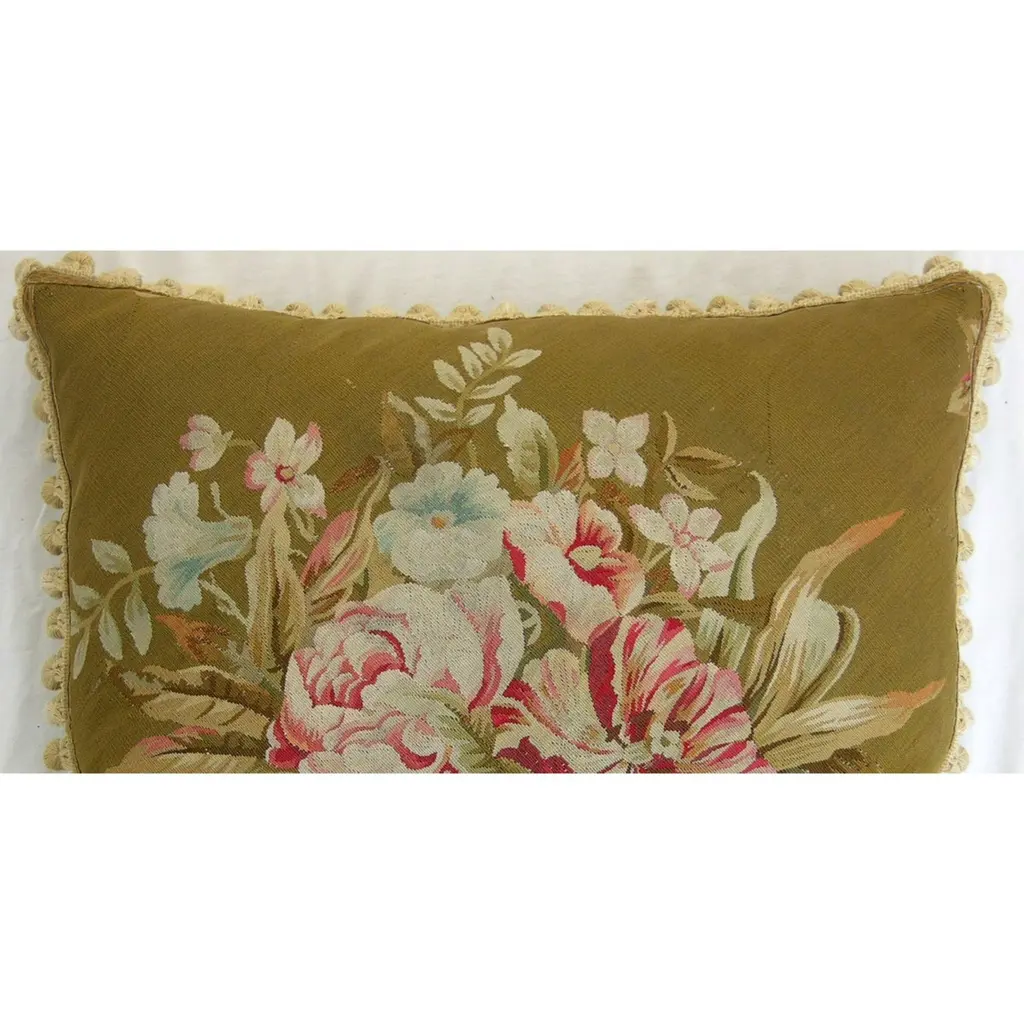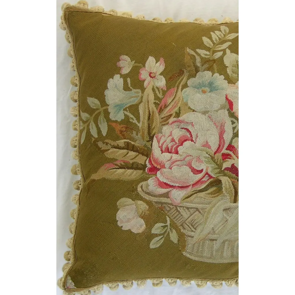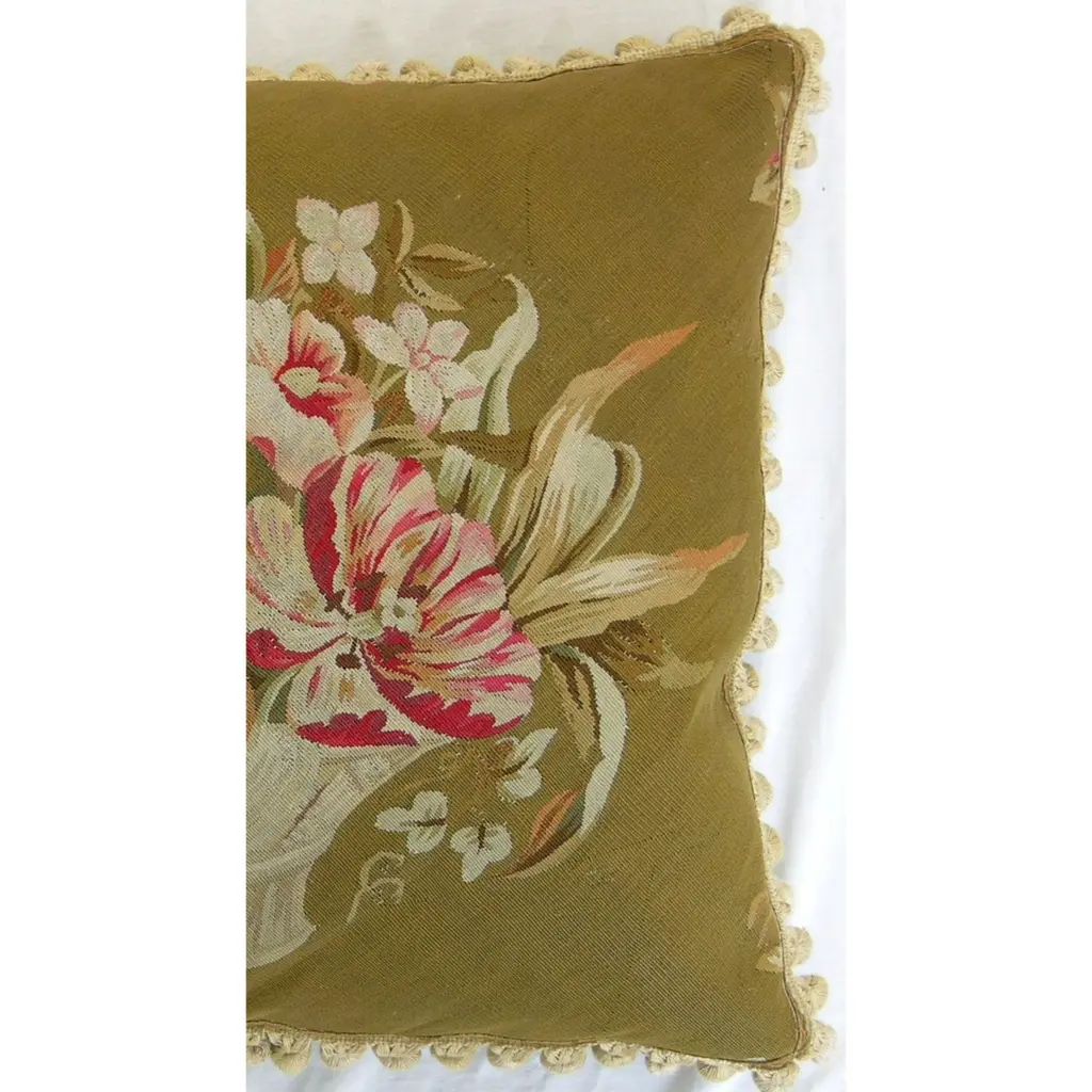 Antique Brussels Tapestry Pillow 17th Century - 24'' X 12''.