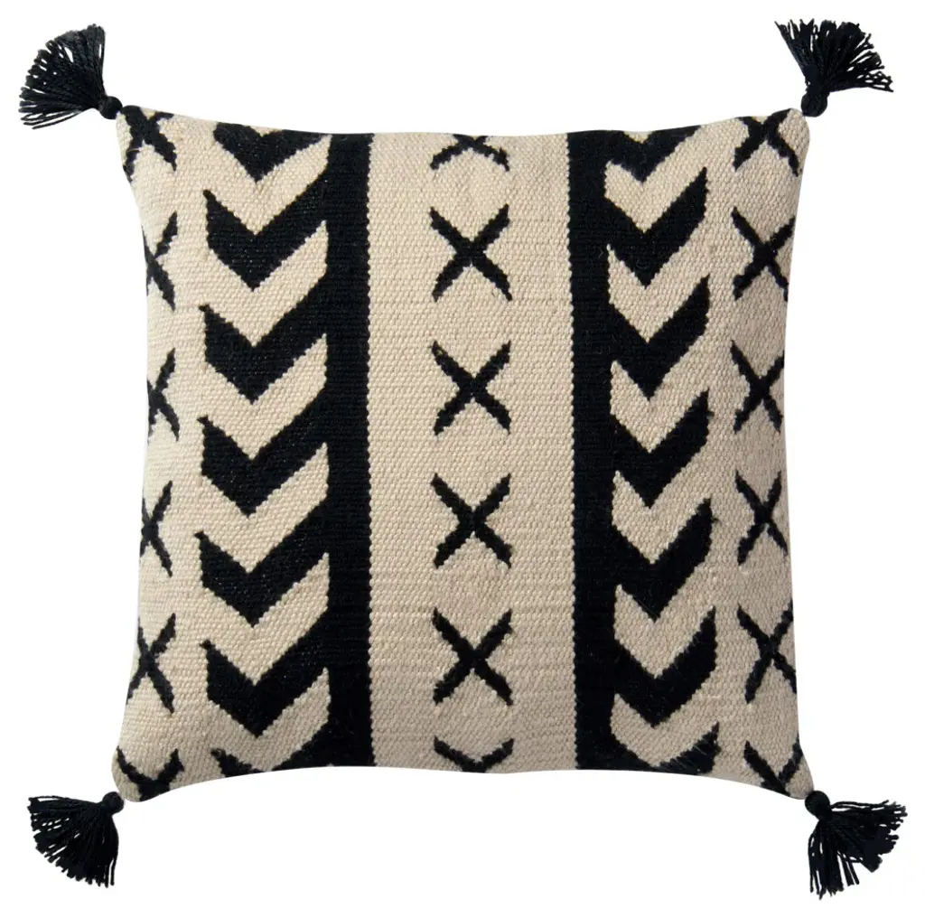 18"x 18" P0502 Indoor/outdoor Black / Ivory Throw Pillow By Loloi