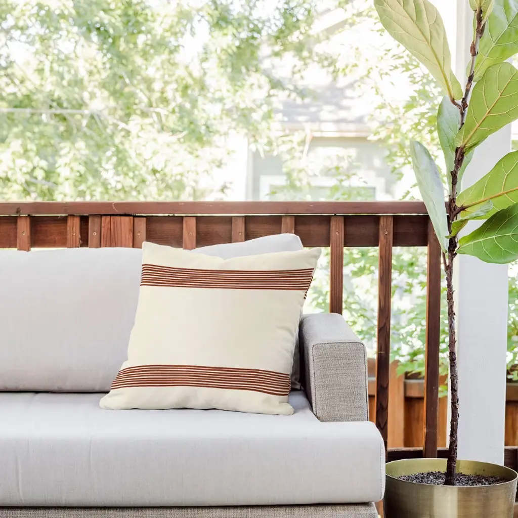 18"x18" Deny Designs Becky Bailey Band In Rust Square Outdoor Throw Pillow Off-white