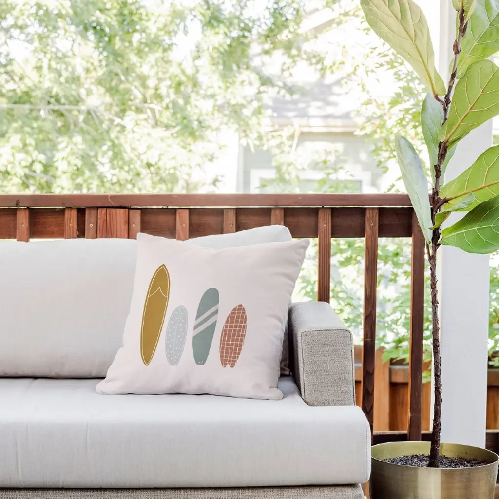 18"x18" Deny Designs Menina Lisboa Summer Cool Surfboards Square Outdoor Throw Pillow Yellow