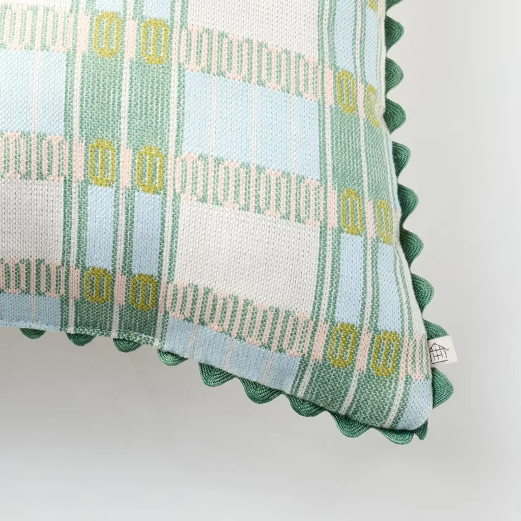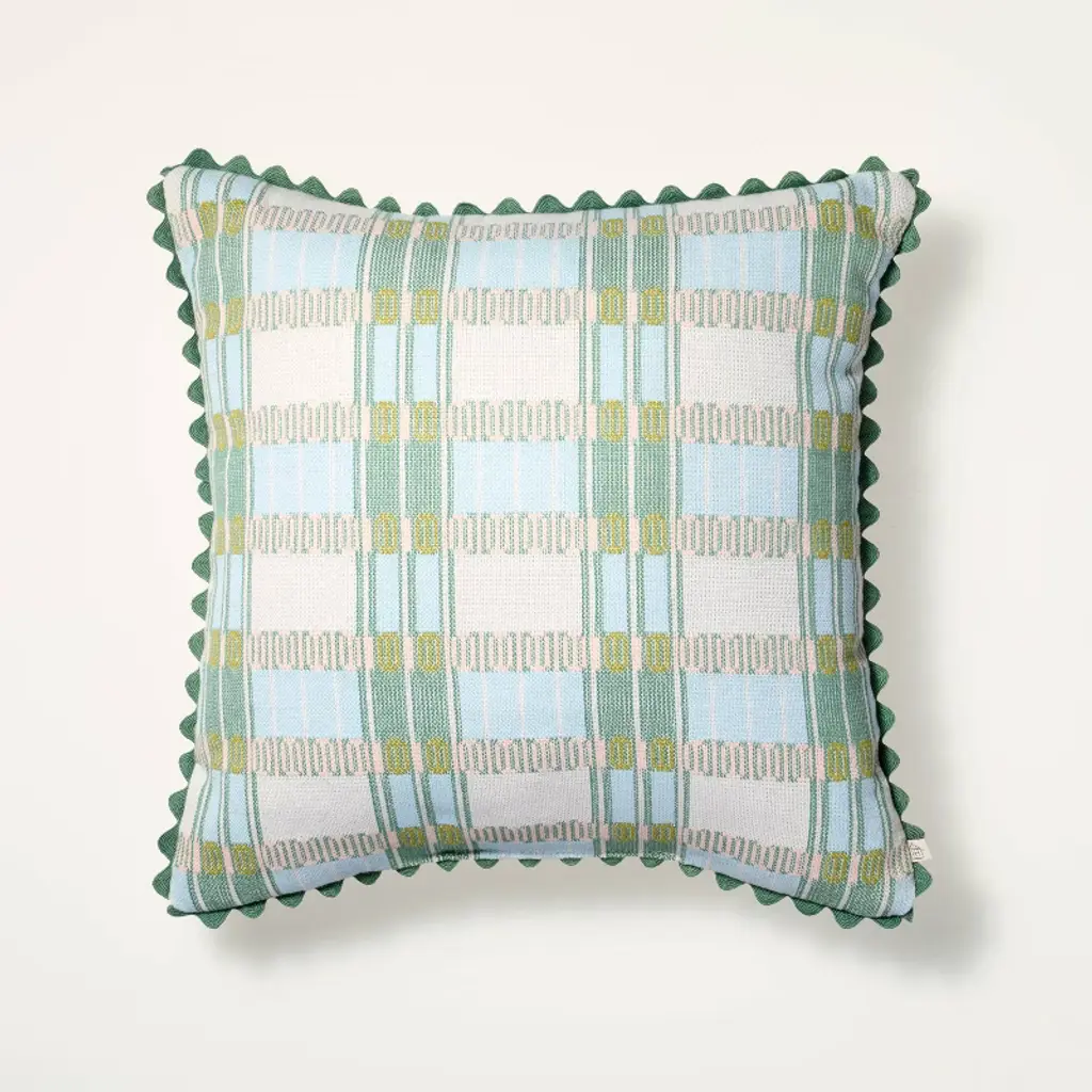 18"x18" Modern Plaid With Scallop Trim Indoor/outdoor Square Throw Pillow Cool Tones - Hearth & Hand™ With Magnolia
