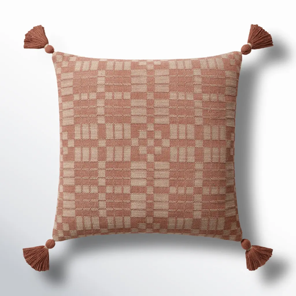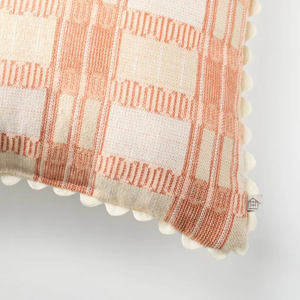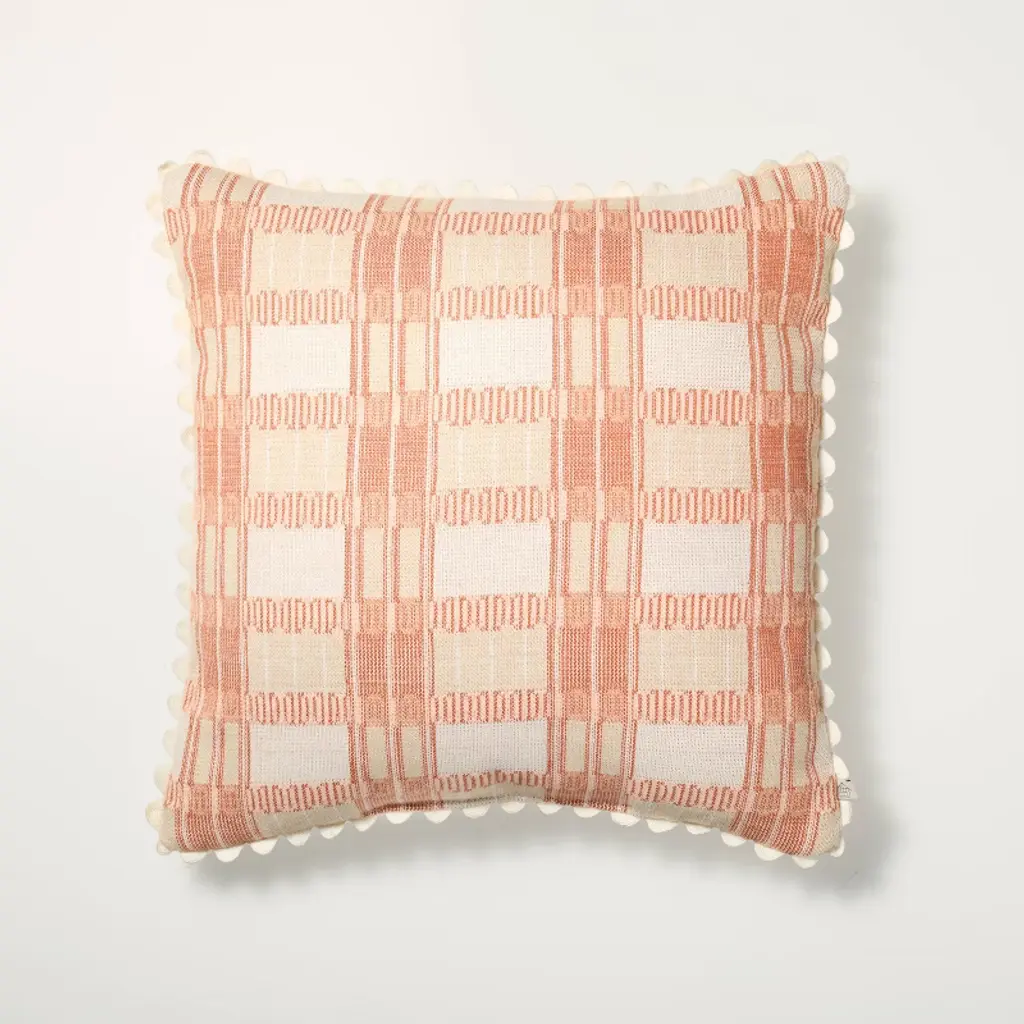 18"x18" Modern Plaid With Scallop Trim Indoor/outdoor Square Throw Pillow Warm Tones - Hearth & Hand™ With Magnolia
