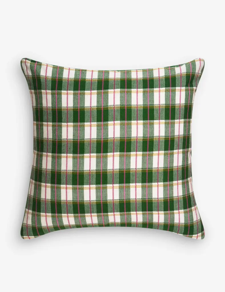 Transform your indoor or outdoor space for the holidays with this Plaid Toss Pillow from Hearth & Hand™ with Magnolia. This 18-inch-square pillow is adorned with a bright plaid pattern in green and cream hues and trimmed with green piping for a celebratory look. Featuring a 100% cotton exterior and a well-filled interior, the toss pillow adds the right amount of comfort and style to your sofa, couch, bench or bed.Hearth & Hand™ with Magnolia: Gather • Create • Enjoy