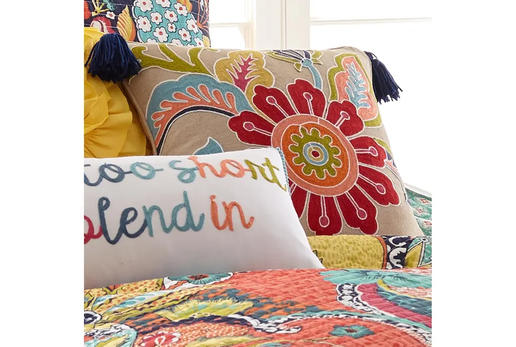 This 18X18 Flower Tassel Pillow is made of traditional cotton material and features tassels. The multicolor design adds a pop of color to any room.