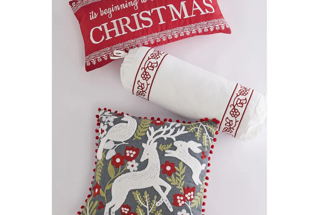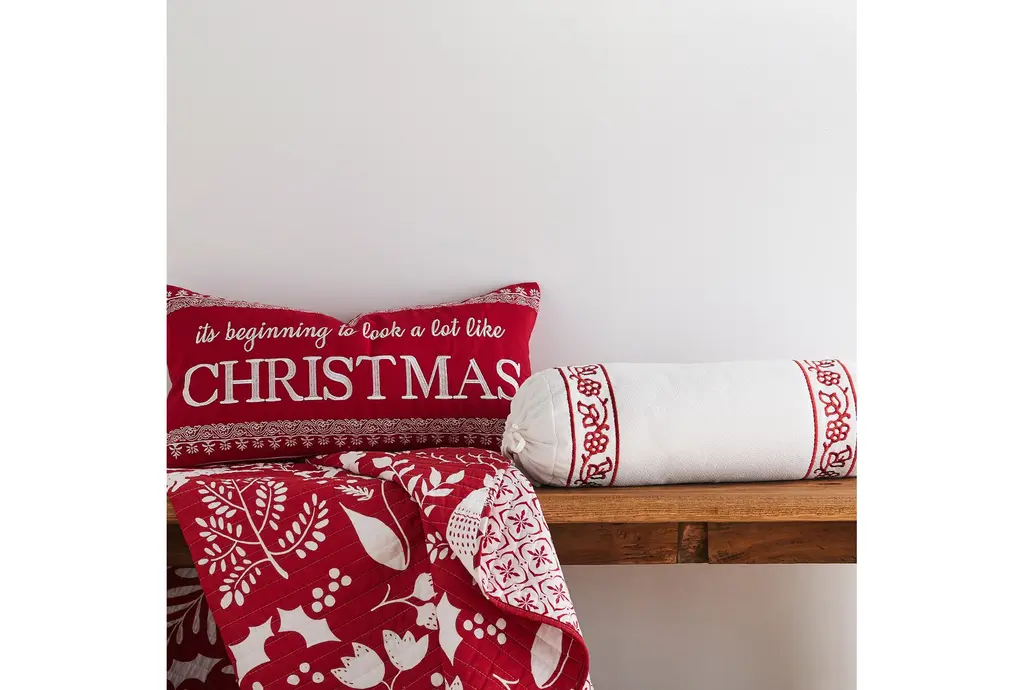 18x7 Red White Floral Border Neckroll Throw Pillow