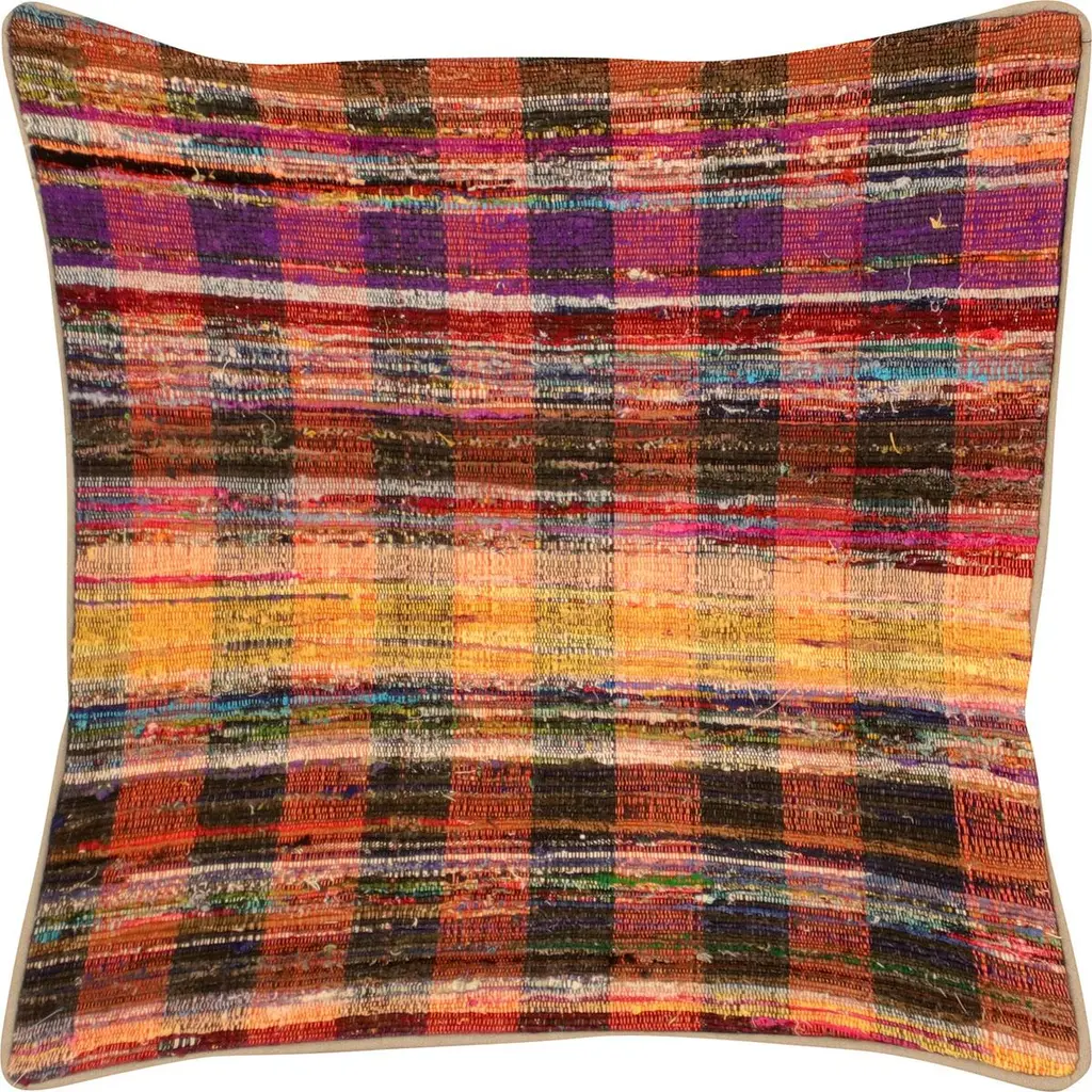 1960s Turkish Rag Pillow. Sewn with fragments of vintage hand made Anatolian cotton & linen kilims. Fiber fill. 523109