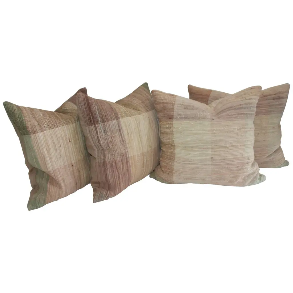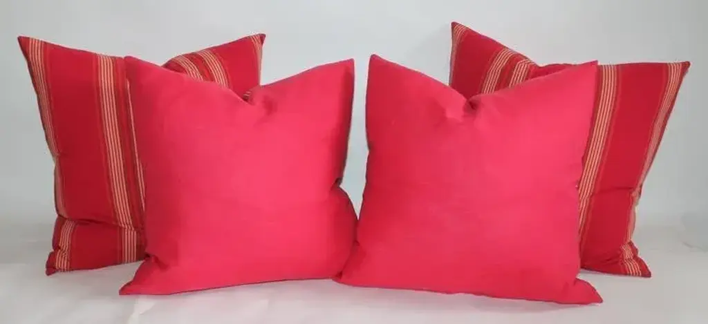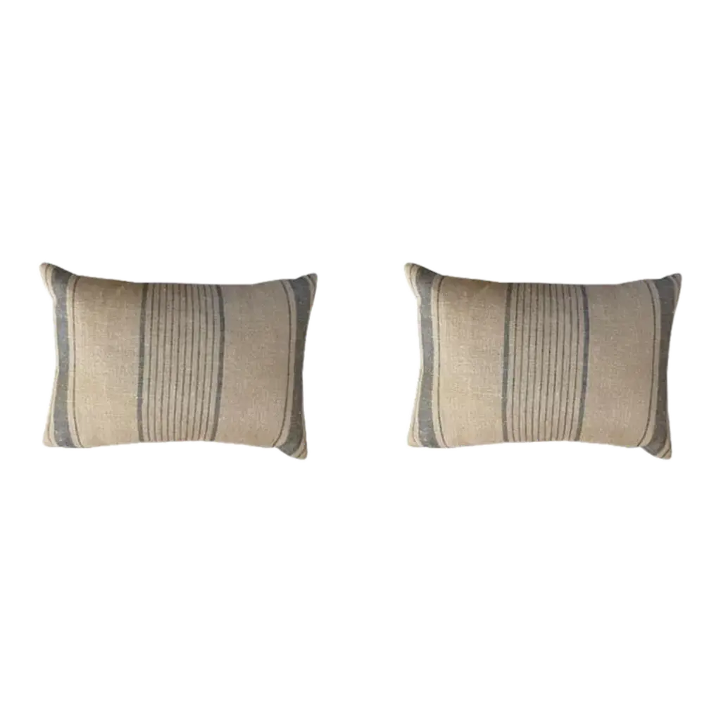There are two pairs of stripped ticking pillows. One pair is a 20 & 20" and the second pair is 22'' x 22''. These are sold as pairs and there are four pairs in stock.
