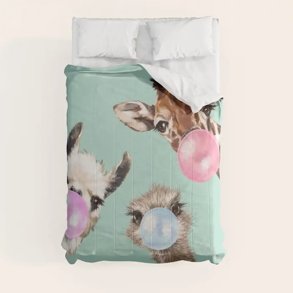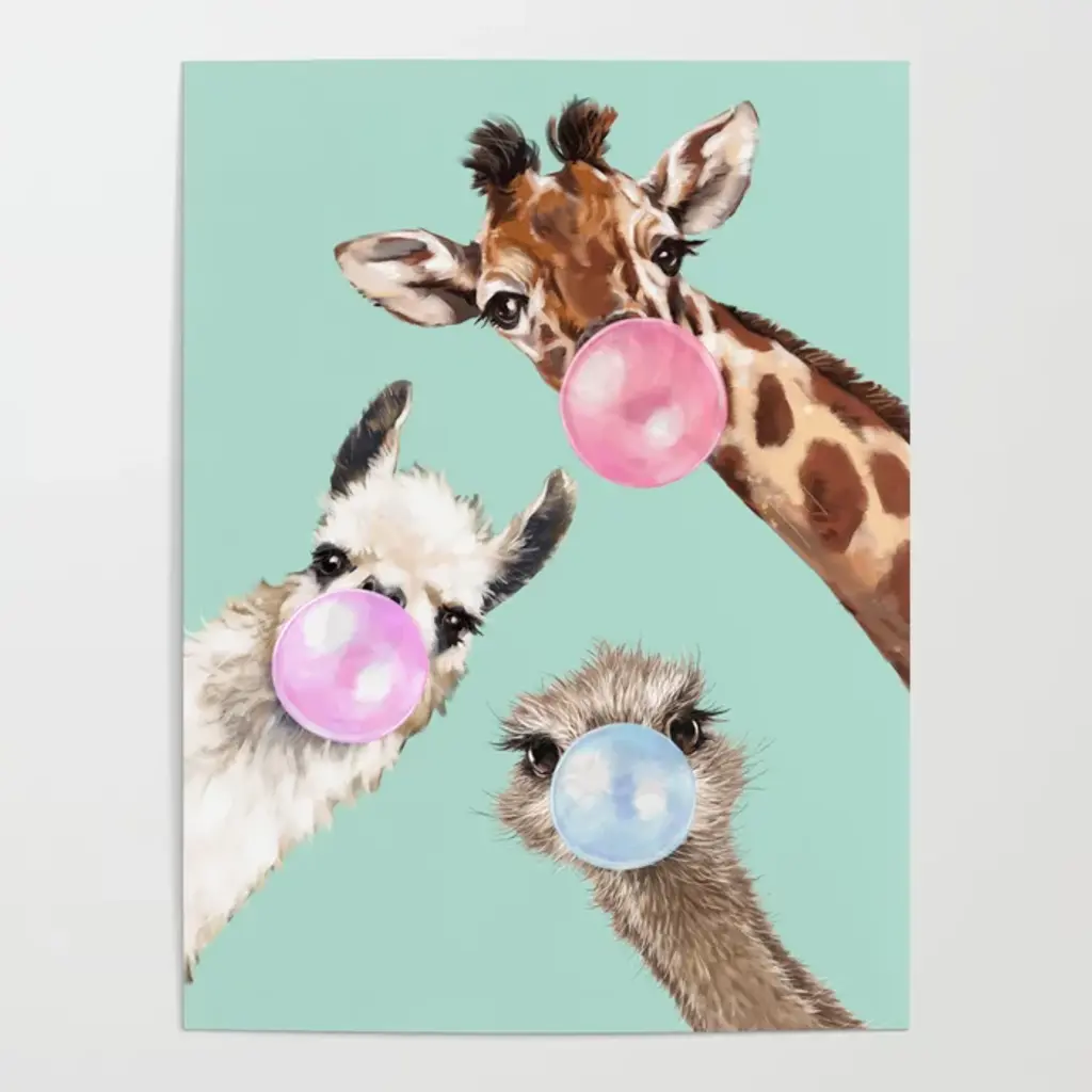 1Pc 18"x18" Stupell Industries Rabbit With Pink Bubblegum Animal Square Kids' Throw Pillow Gray