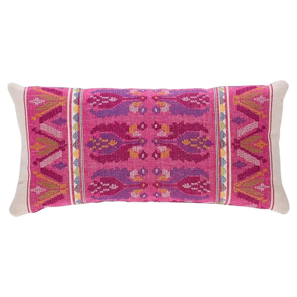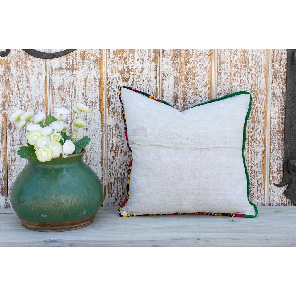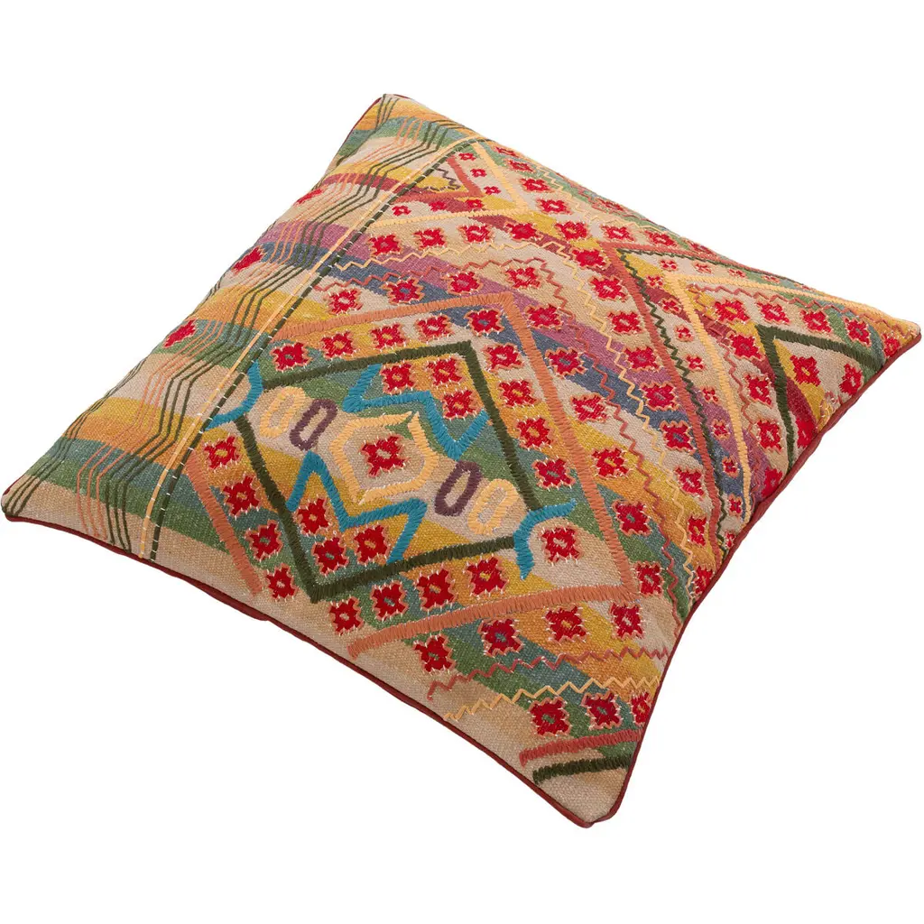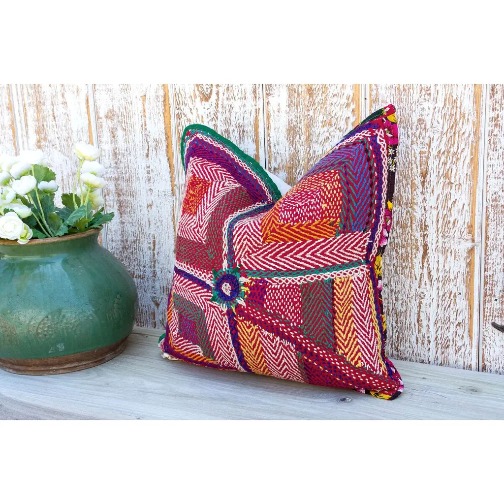 Quilted by the gypsy woman of the Saami community often reusing fabrics from clothing. This antique tribal pillow feature a fabric with intricate lines and distinctive stripped & diamond patterns. The stitching of indigenous origins is similar to that of the Kantha style. This pillow features a linen back, zipper enclosure with a down blend insert.