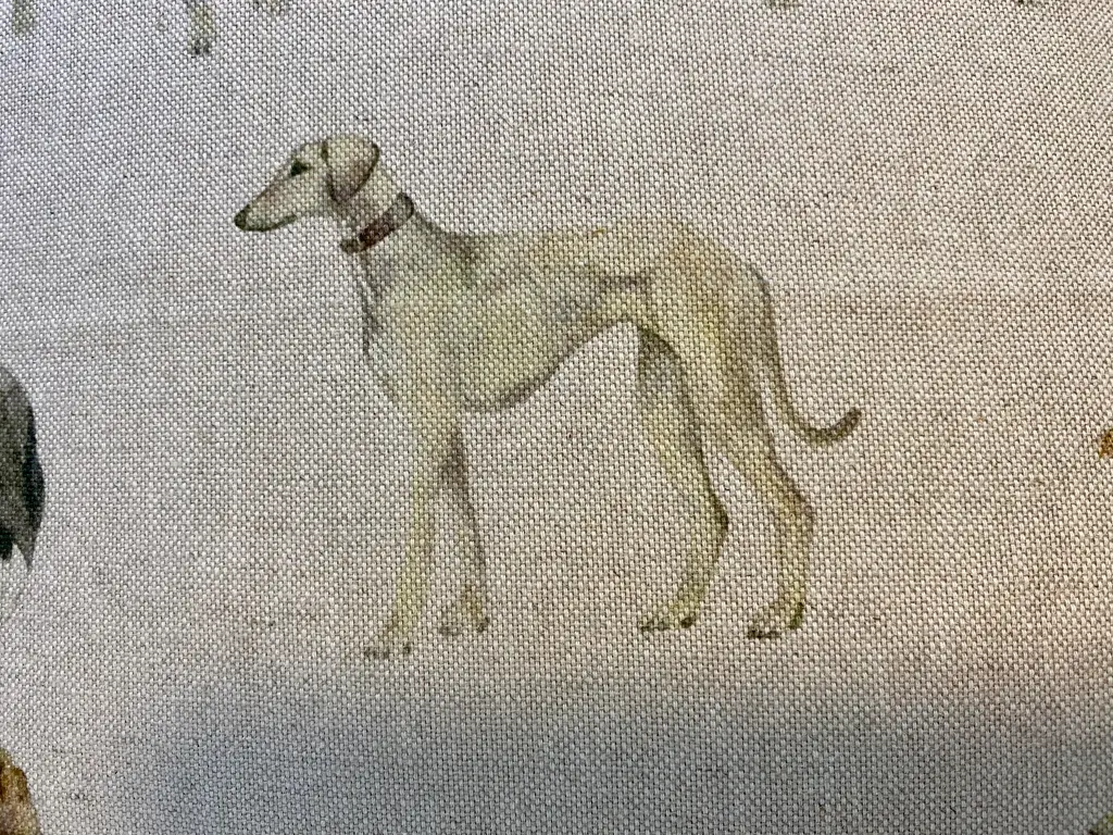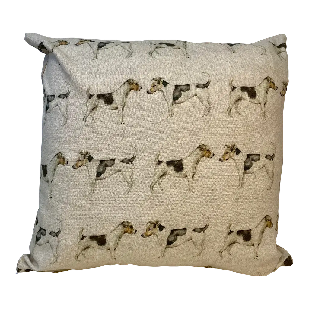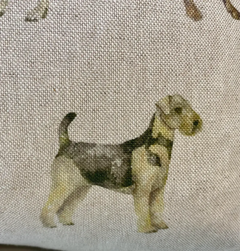 20” Square Pillow Adorned With A Print Comprised Of Various Dog Breeds - Made In U K. This pillow was made in Wales, U.K., by a small cottage designer/manufacturer owned by a lovely couple. The covers are made from discontinued upholstery material. So, once they are gone, you will not see these pillows again. They are truly unique. Each pillow measures 20” W x" 20" T x 7" D . The fill is larger giving the pillow a full look. Dry clean only. Pillows are sold only with insert. For other designs and sizes, please check our shop here.