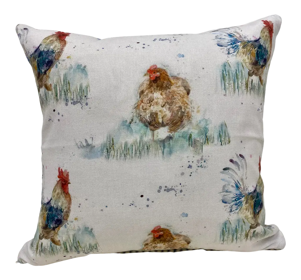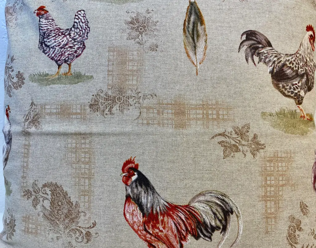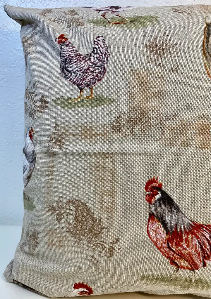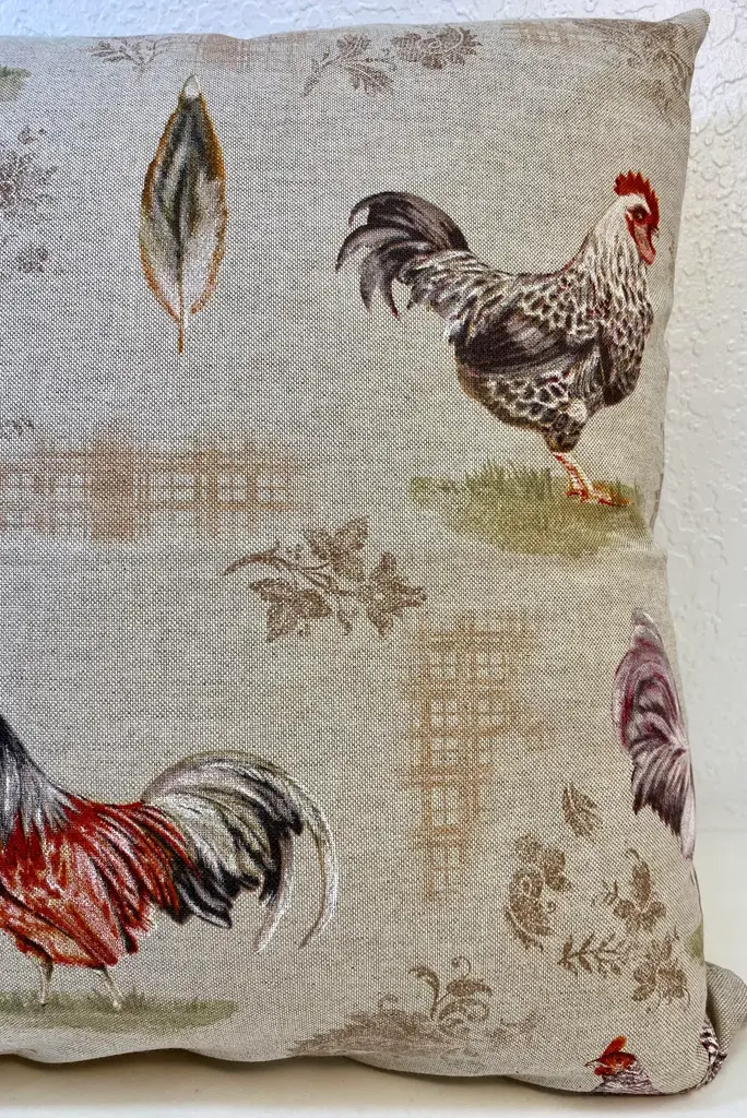 20” Square Pillow With Rooster & Chicken Print - Made In U K