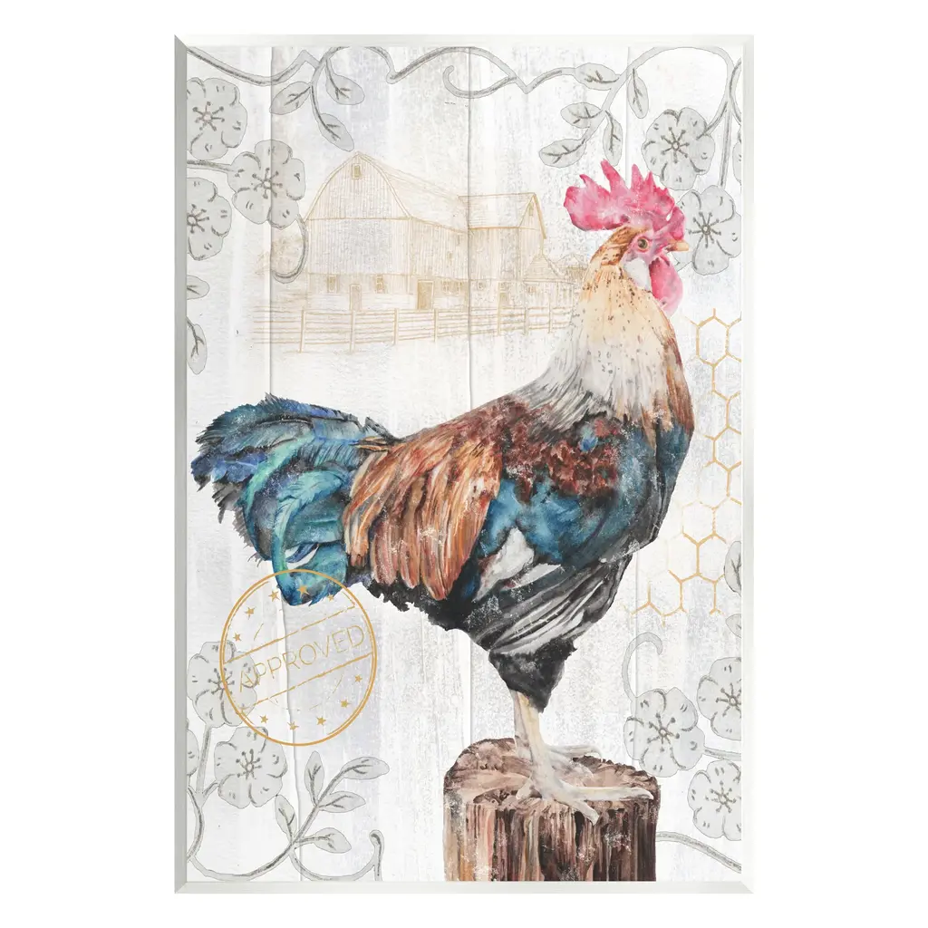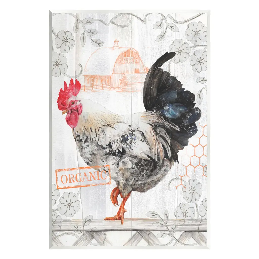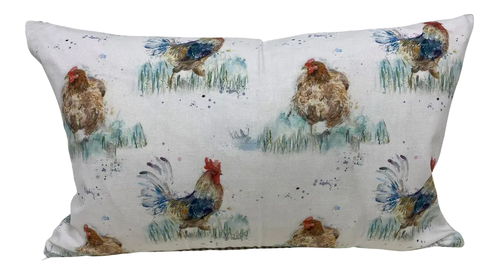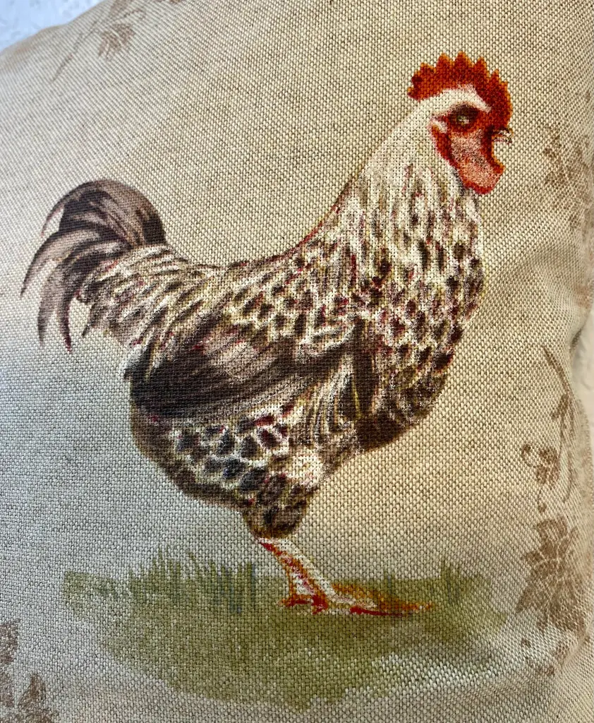 20” Square Pillow With Rooster & Chicken Print - Made In U K