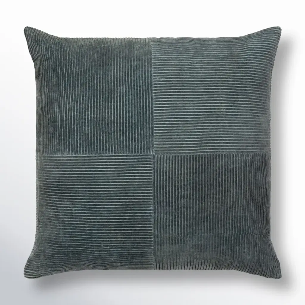 20" X 20" Charcoal Cotton Corduroy Quarters Down Fill Accent Pillow By Surya