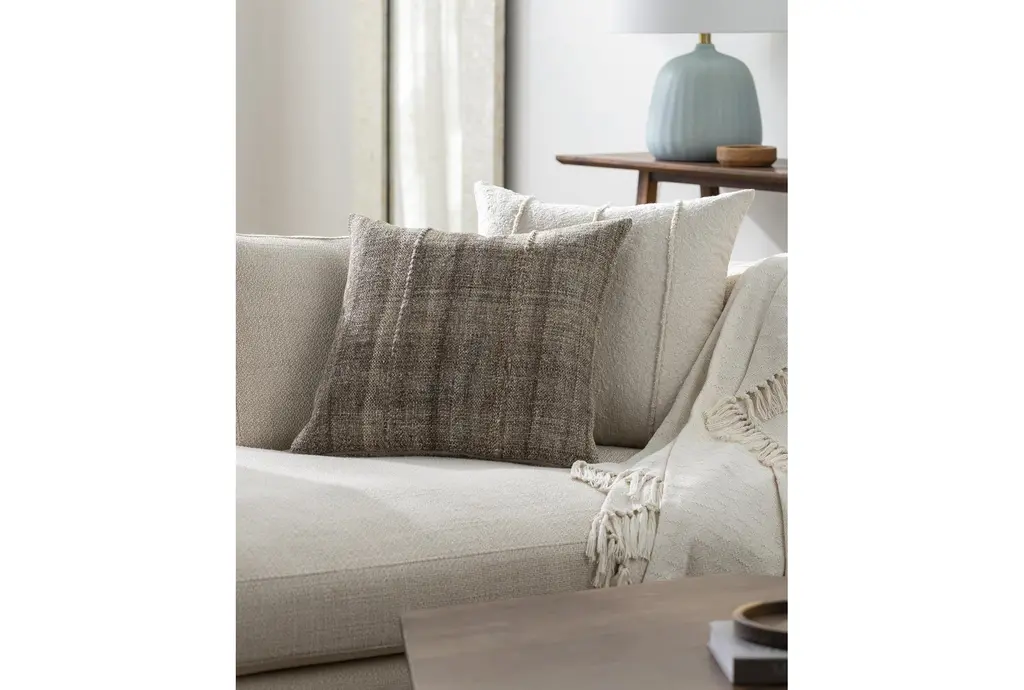 20" X 20" Dark Brown Mudcloth Down Fill Accent Pillow By Surya brings texture-forward comfort to seating and bedding with a mudcloth-inspired face and plush down fill that retains loft. The multi-media front mixes woven slubs and tonal threads for subtle depth, while the high performance fabric backing helps resist wear and simplifies care. Sized for versatile layering, this pillow adds tactile warmth and cloud-like support to sofas and beds while standing up to regular use.