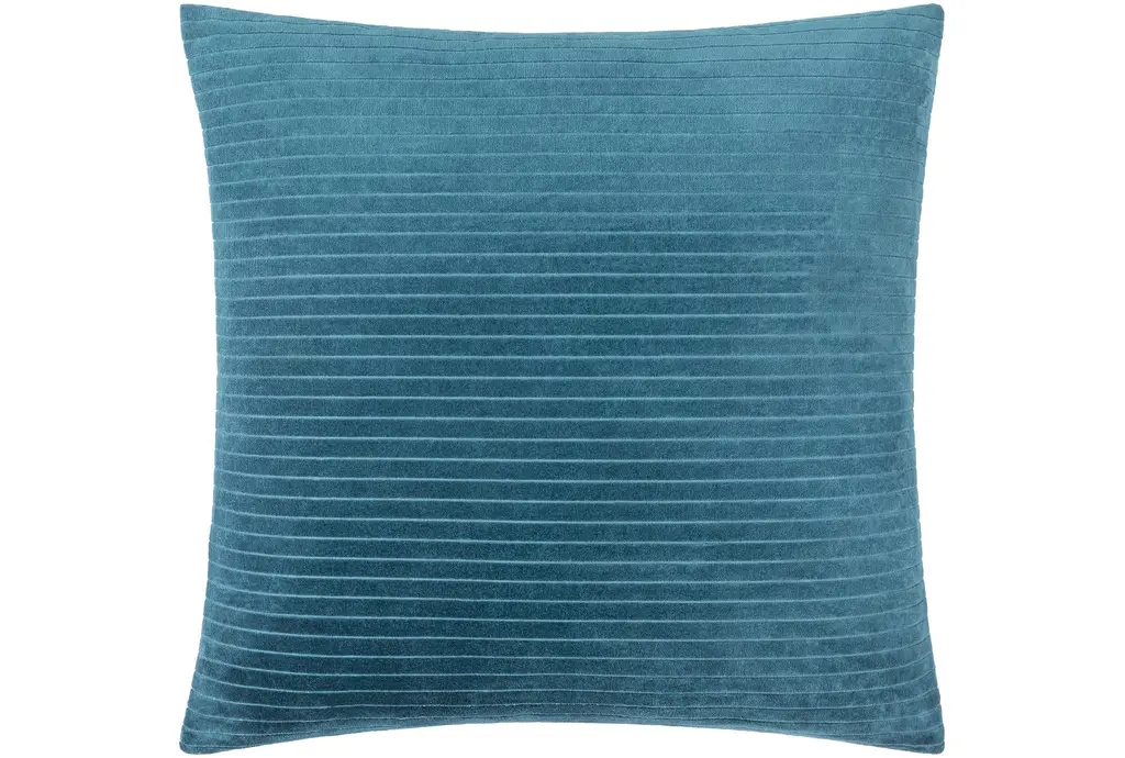 20" X 20" Deep Teal Cotton Velvet Stripes Down Fill Accent Pillow By Surya | Machine Washable