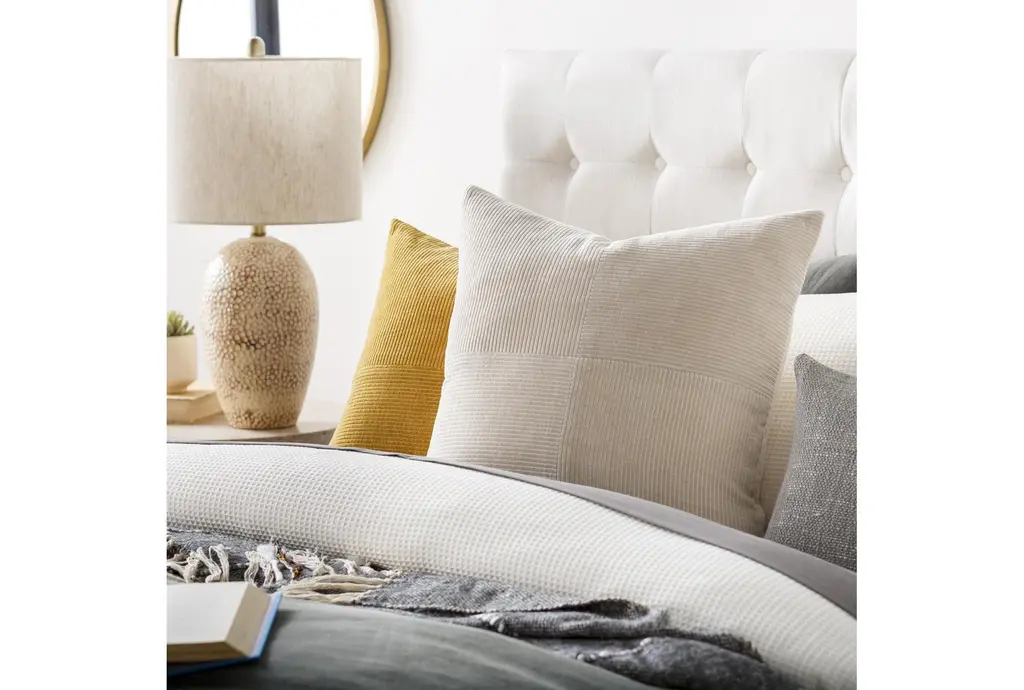 20" X 20" Light Beige Cotton Corduroy Quarters Accent Pillow By Surya