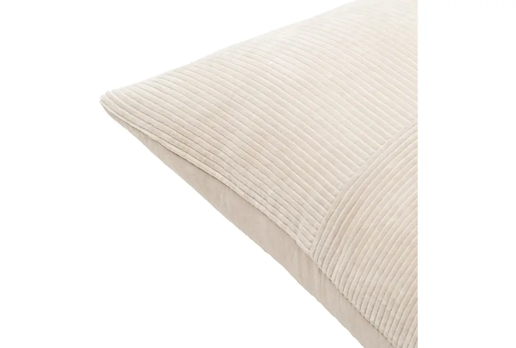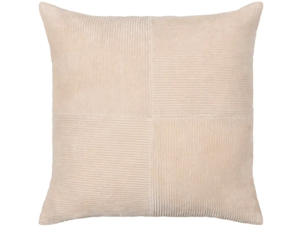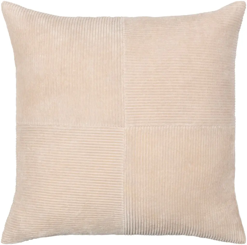 20" X 20" Light Beige Cotton Corduroy Quarters Down Fill Accent Pillow By Surya