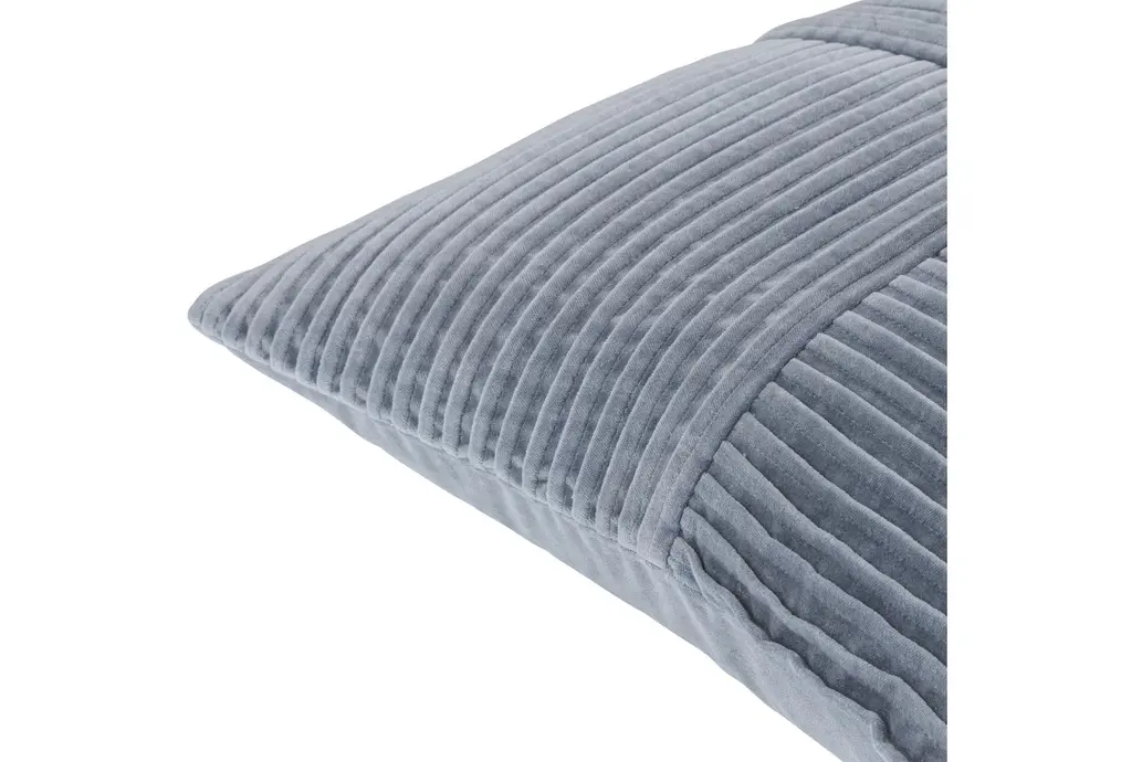 The 20" X 20" Light Blue Conrad Accent Pillow By Surya brings plush texture and dependable wear to sofas and beds. Covered in 100% cotton, its ribbed patchwork face adds tactile interest while a high performance fabric base helps resist abrasion and maintain shape. A plump insert provides comfortable support for lounging and layering, and the 20 x 20 size makes it easy to mix with existing pillows for a comfort-forward finish.