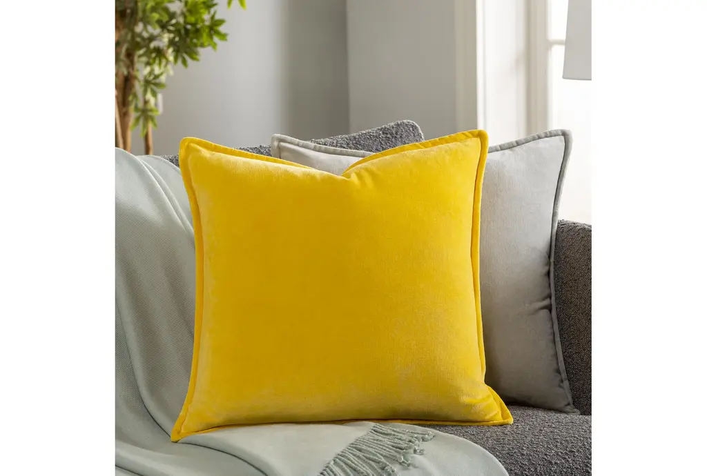 Add a touch of comfort and color to your space with the 20" x 20" Mellow Yellow Cotton Velvet Down Fill Accent Pillow by Surya. This mustard-colored pillow brings a cheerful vibe to any room while providing plush support. Its machine washable cotton velvet cover ensures easy maintenance and long-lasting softness.