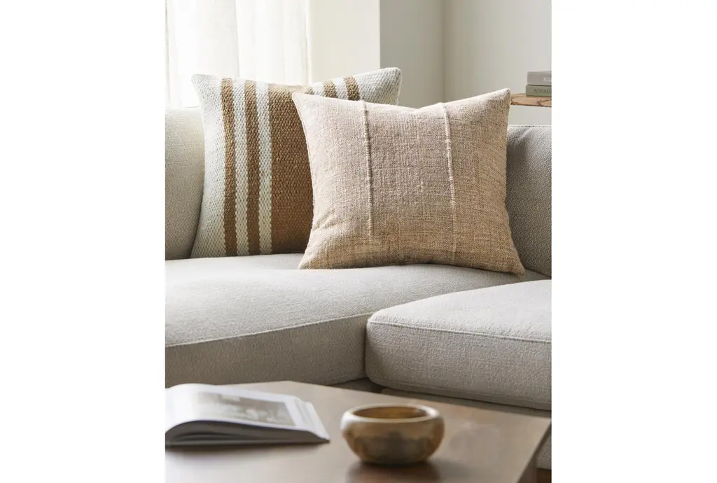 20" X 20" Tan Cotton Mudcloth Down Fill Accent Pillow By Surya