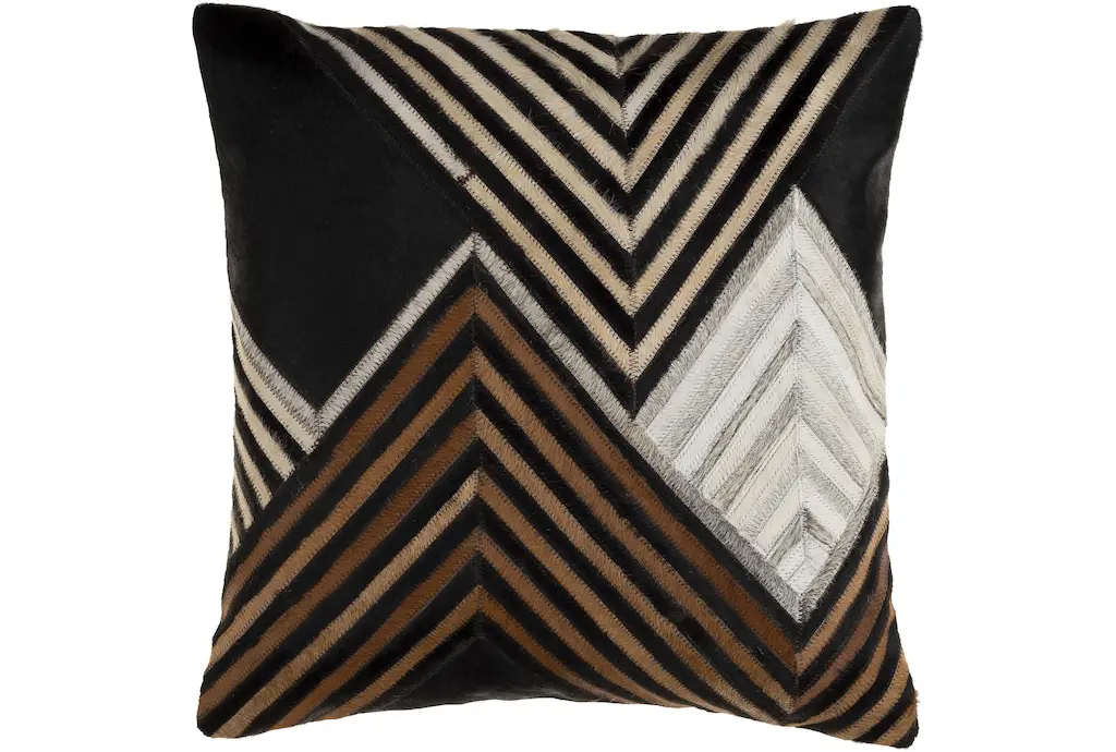 20x20 Black Brown Natural Fluffy Layered Chevron Fabric Hide Throw Pillow By Surya