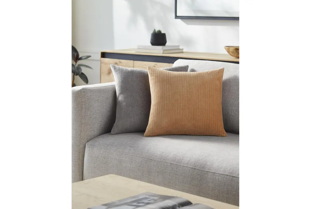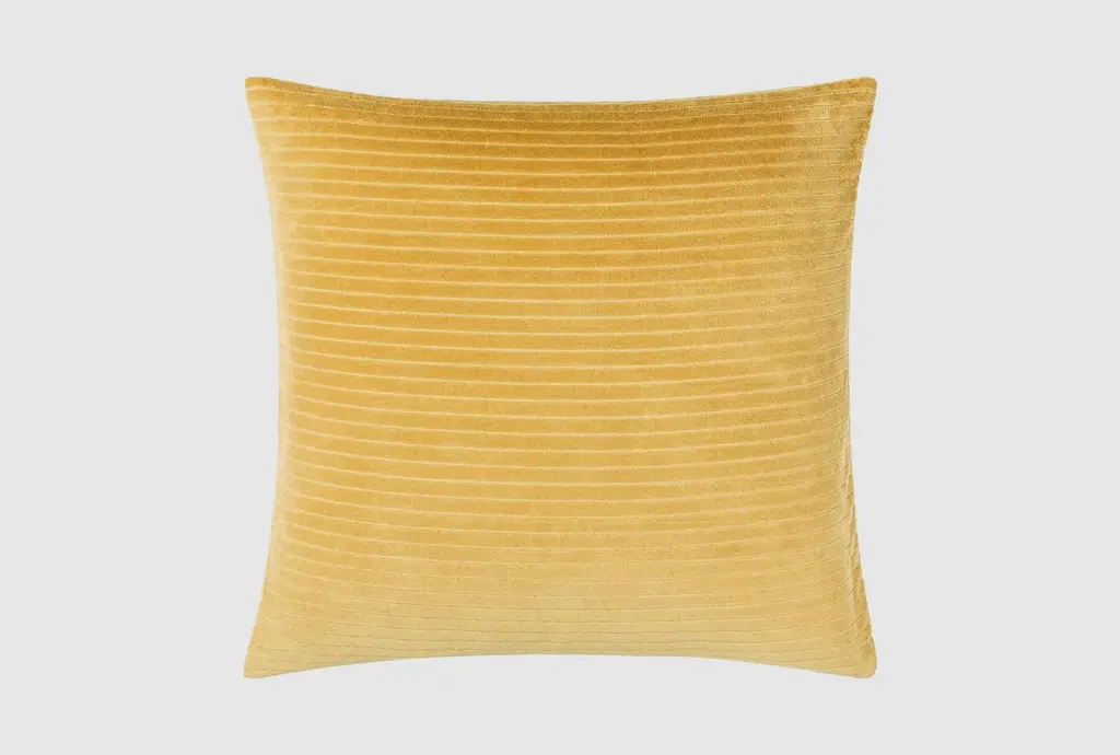 The 22" x 22" Camel Cotton Velvet Stripes Accent Pillow by Surya adds a touch of sophistication to any living space. This soft and plush pillow features a beautiful camel color and a ribbed design, perfect for enhancing your home decor. Its machine washable fabric ensures easy maintenance, making it a practical yet stylish addition to your home.