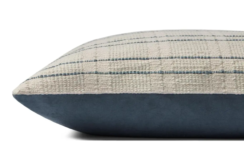 22" X 22" Cream & Blue Fabric With Poly Fill Insert Accent Pillow By Amber Lewis X Loloi